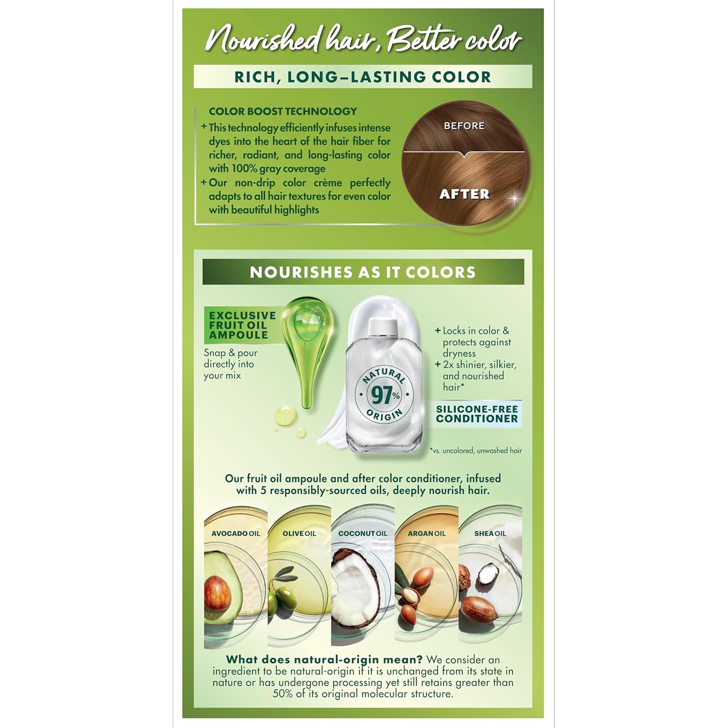 - Hair Dye Kit: The only hair color with a separate fruit oil ampoule that you snap & pour directly into the mix; Follow hair dye with our after color hair conditioner, infused with a blend of 5 fruit oils: avocado, olive, shea, argan & coconut oil