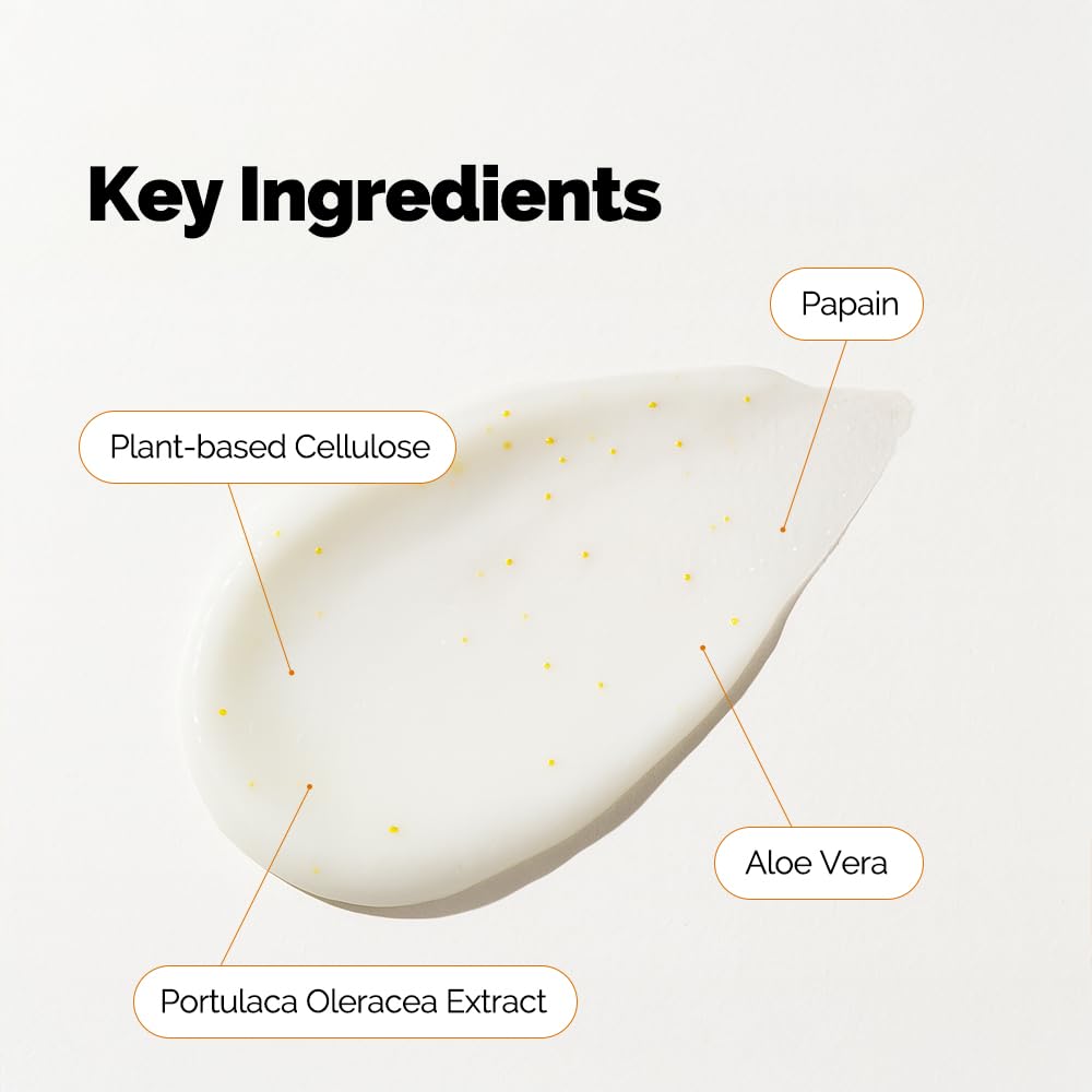 - Cellulose Scrubs and Natural Enzyme Complex – Dual-Action Refining Formula A powerful blend of cellulose scrub particles and natural enzymes that deeply cleanse and gently polish the skin, revealing a softer, brighter surface.