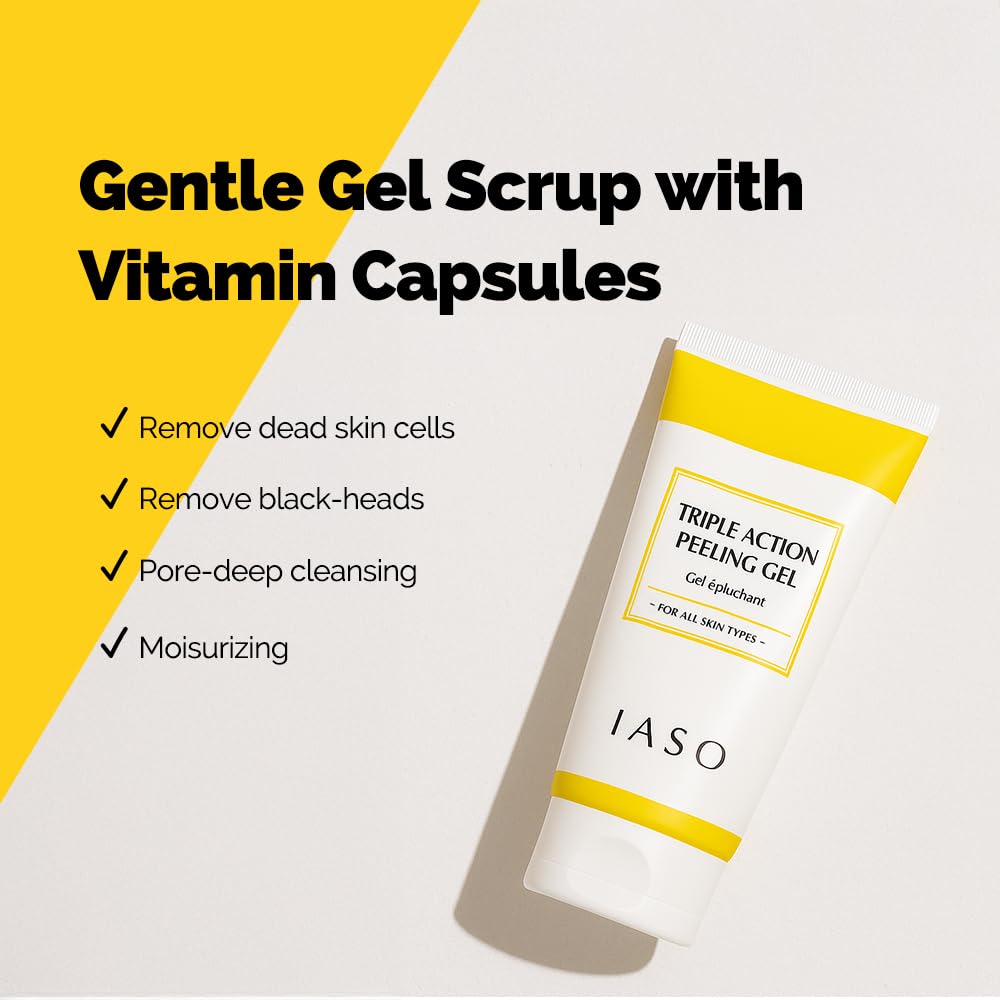 IASO Triple Action White Peeling Gel | Exfoliating Gel for Face, eep Pore Cleanse, Tone-Up Effect & Smoother Skin Texture, Korean Skin Care, 5.07 oz