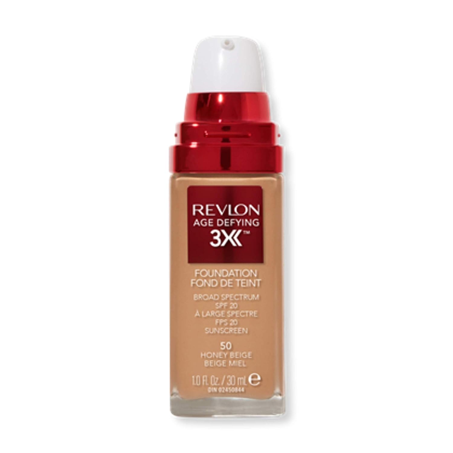 Revlon Liquid Foundation, Age Defying 3XFace Makeup, Anti-Aging and Firming Formula, SPF 30, Longwear Medium Buildable Coverage with Natural Finish, 050 Honey Beige, 1 Fl Oz