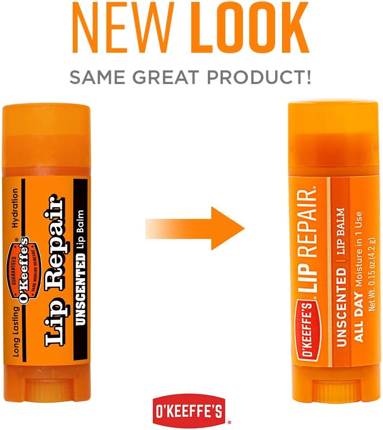 O'Keeffe's Unscented Lip Repair Lip Balm for Dry, Cracked Lips, Stick, (Pack of 9)