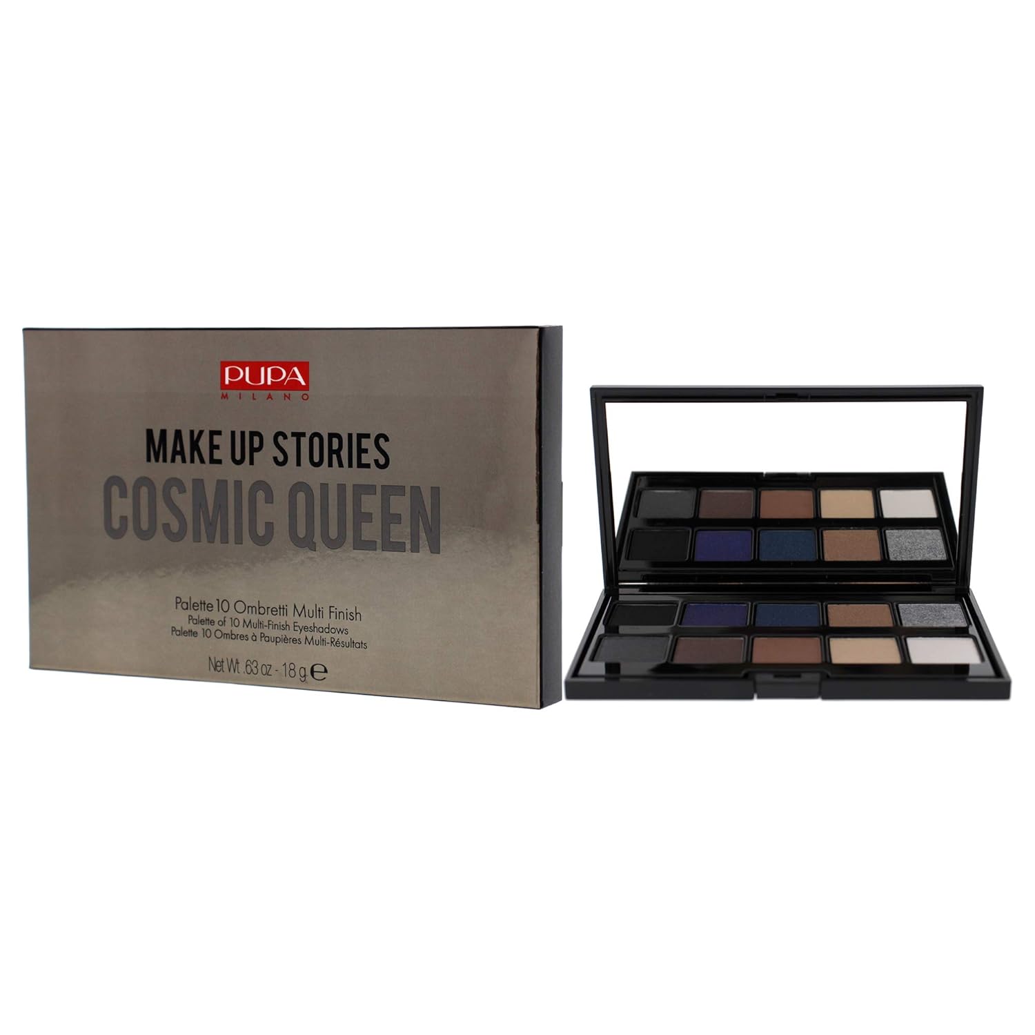Pupa Milano Make Up Stories Eyeshadow Palette 004 Cosmic Queen - 10-Shade Shadow Collection with Matte, Satin, and Metallic Color Options - High Pigment Formula - Soft, Blendable Texture - 0.63 oz