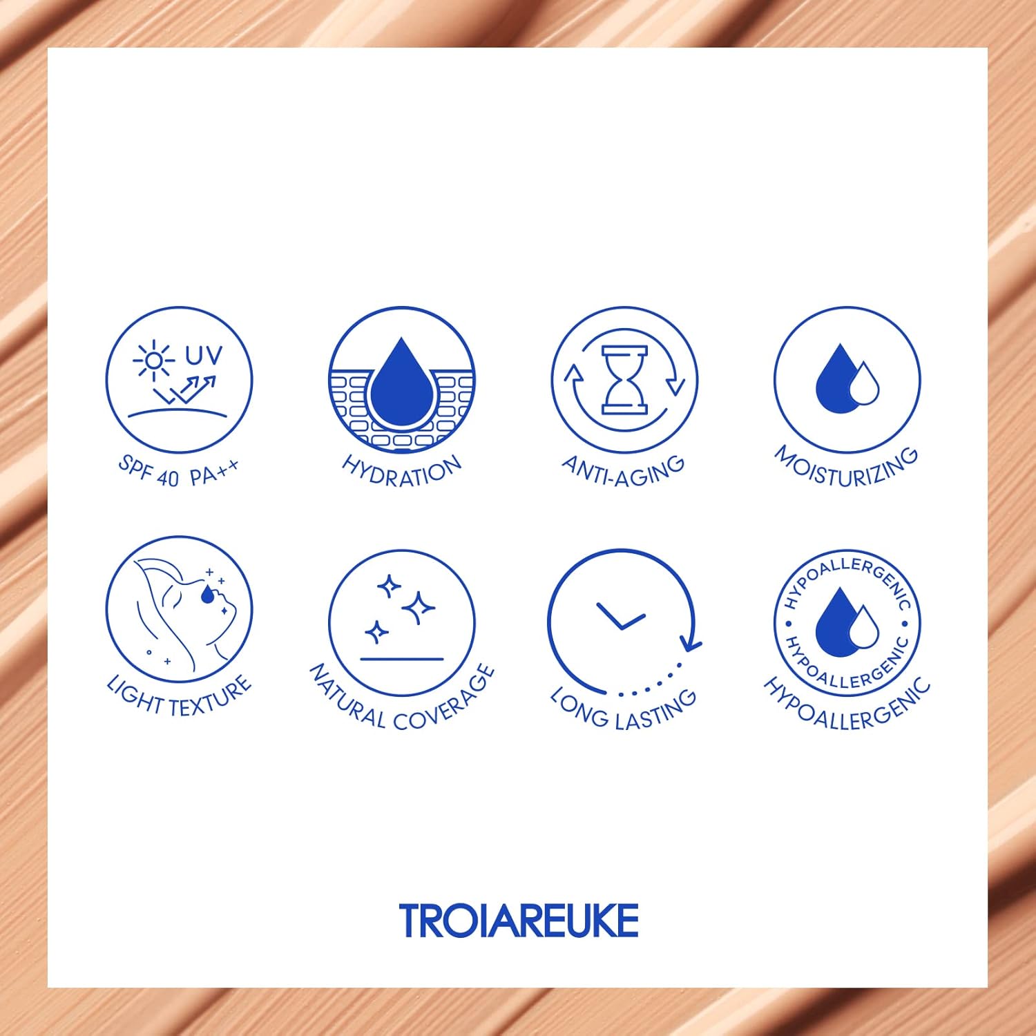 TROIAREUKE Aesthetic BB Cream H+ Formula SPF50+ PA+++, Lightweight Blemish Balm, Tinted Moisturizer with Medium Coverage, Lasting Foundation Makeup Base for Oily Skin | Korean Beauty Makeup