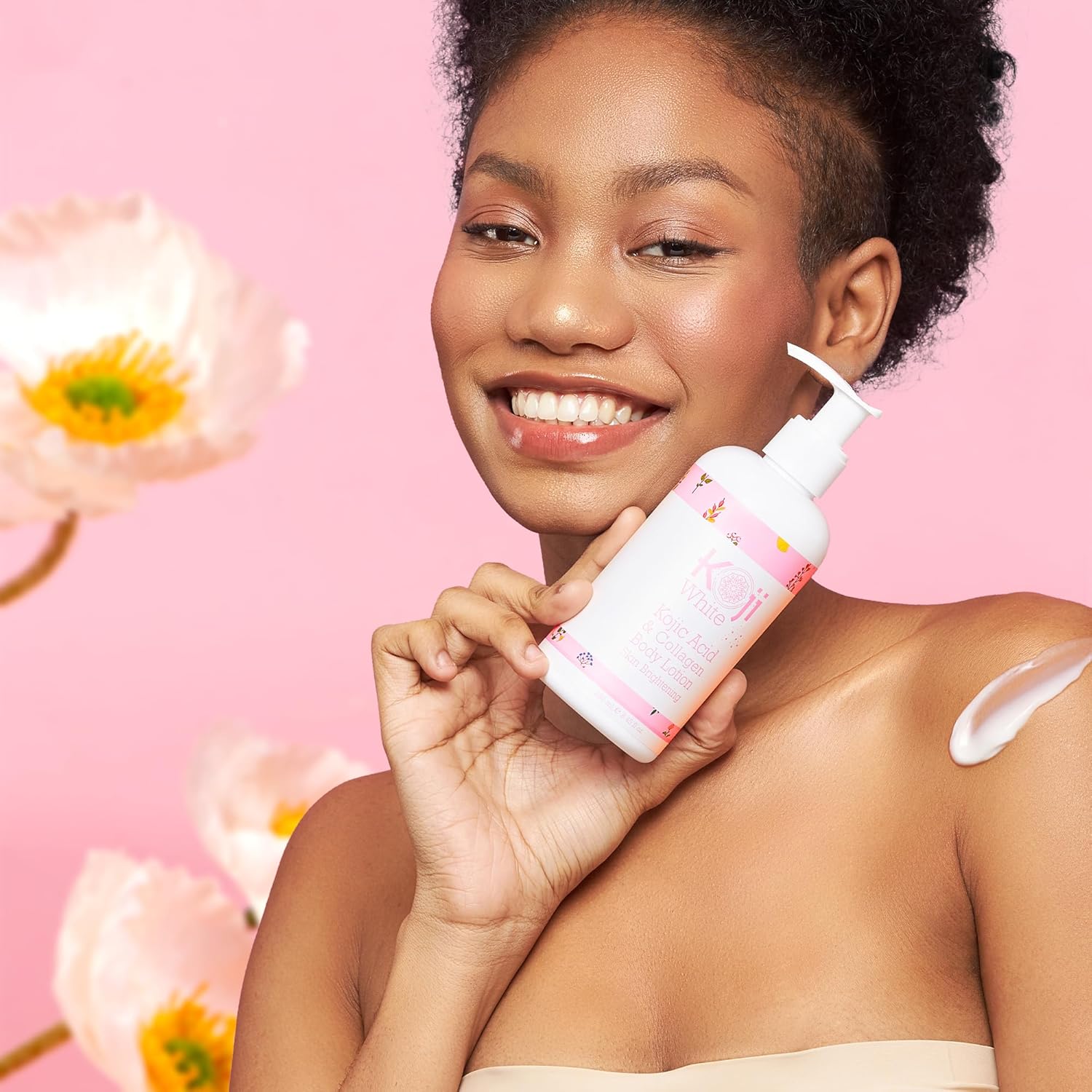 Koji White Kojic Acid & Collagen Body Lotion, Women Gifts Set for Skin Brightening with Arbutin, Glowing Skin, Moisturizer & Radiant Complexion, Uneven Skin Tone - Vegan, 8.45 Fl Oz (2 Packs)