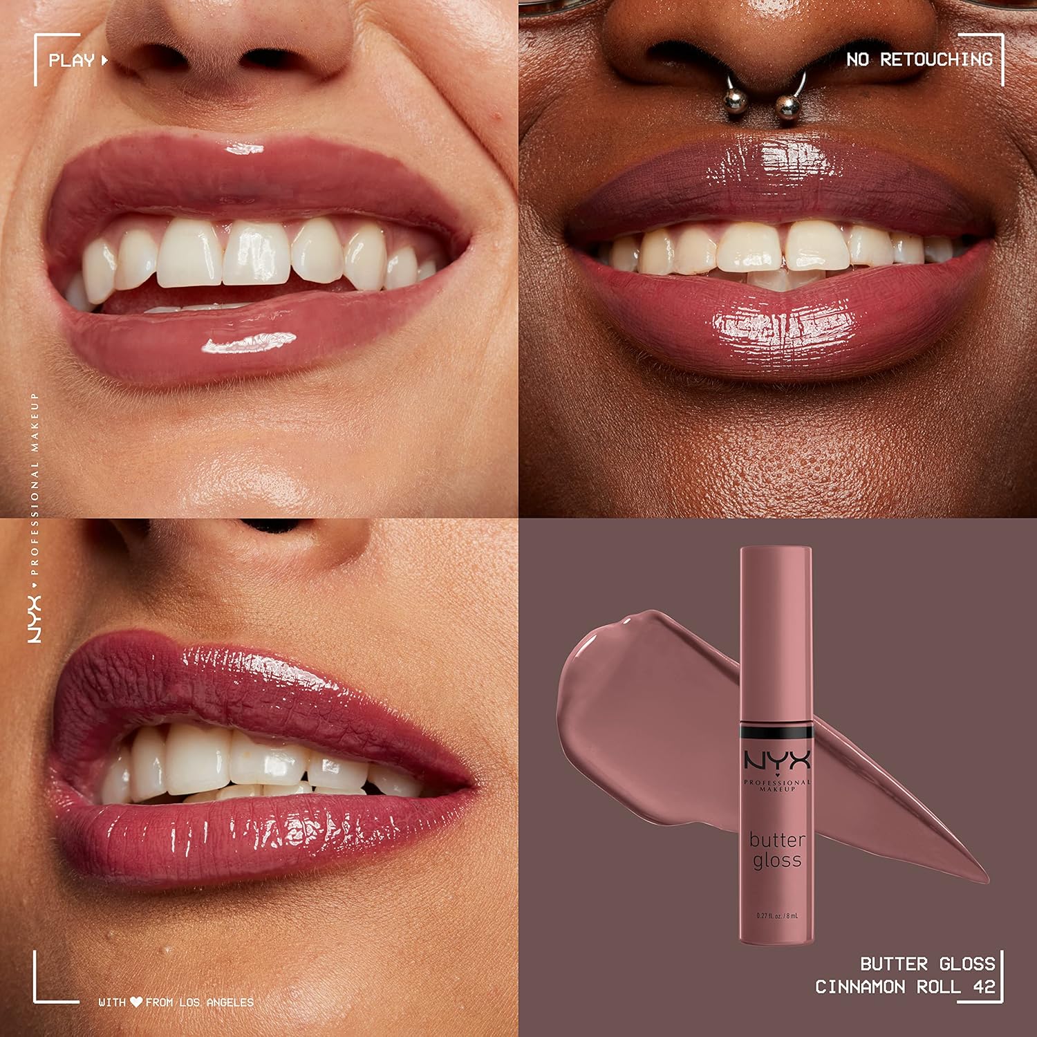 NYX PROFESSIONAL MAKEUP Butter Gloss, Non-Sticky Lip Gloss - Cinnamon Roll (Dusty Nude Mauve)