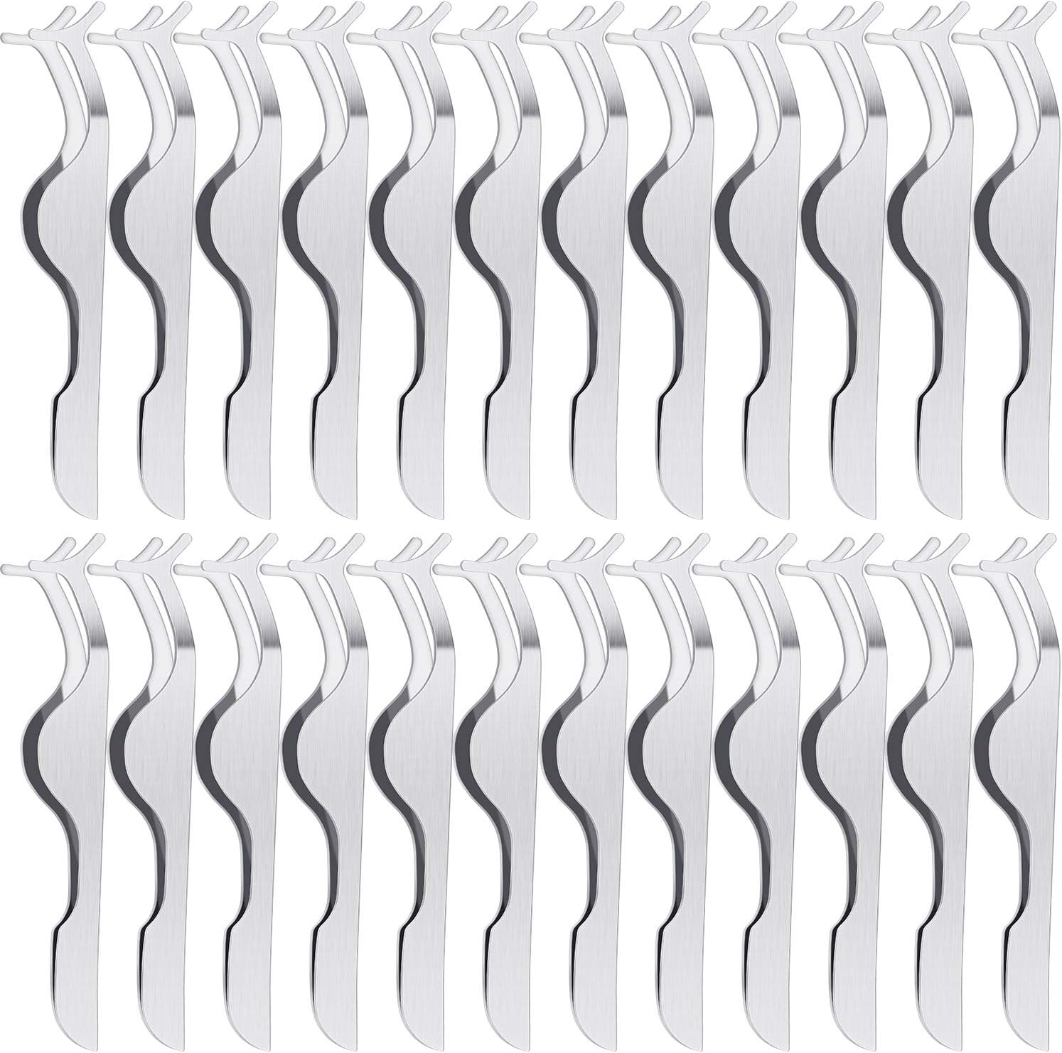 24 Pieces False Eyelashes Applicator Tool Stainless Steel Eyelash Extension Tweezers Remover Clip Tweezers Nipper Eyelash Auxiliary Clip for Women Makeup Application and Removal