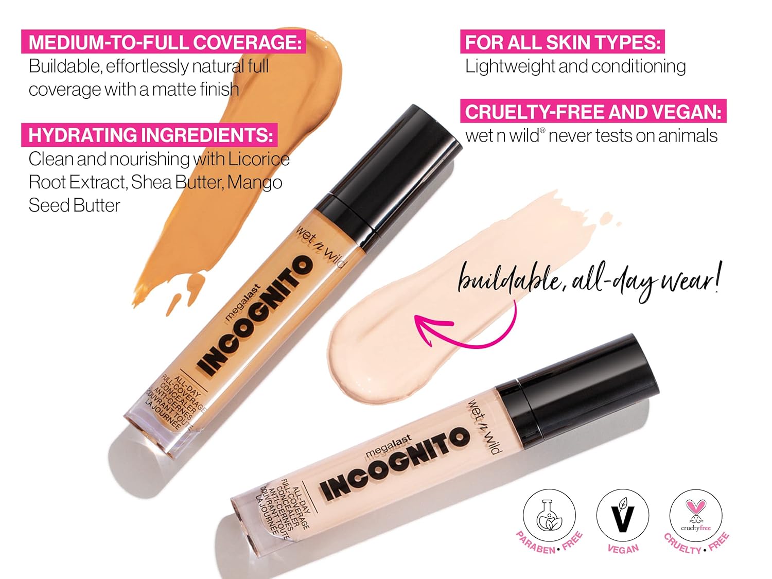 wet n wild Mega Last Incognito All-Day Full Coverage Liquid Matte Concealer, Medium Neutral