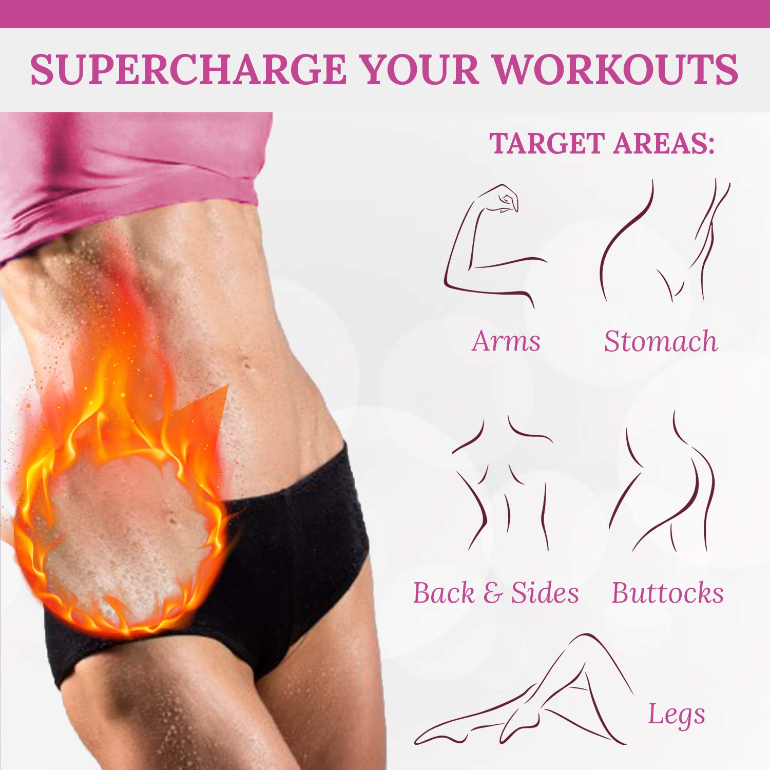 - Usage: Apply small quantity of the sweat gel for women on stomach, arms, legs, calves, back, and buttocks before any physical activity with or without a body wrap or waist trainer. Also can be used with massagers.