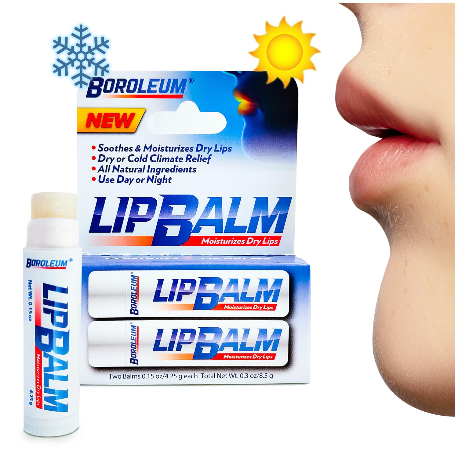 - KEEP HEALTHY LIPS NEARBY WITH A 2-PACK: No more searching the house, digging between couch cushions for missing chap sticks - This 2-Pack Boroleum Lip Balm means you can be sure you’ll always have a tube handy when your lips start to crack