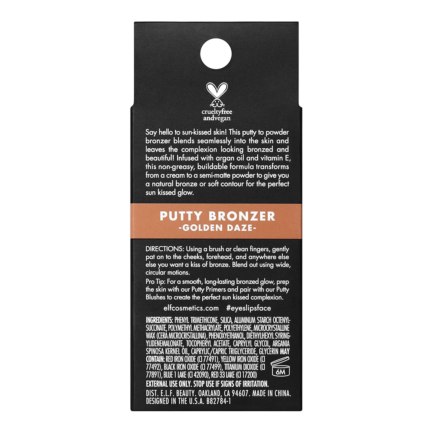 - CREAM-TO-POWDER FINISH: Bask in that sun-kissed, back-from-vacation glow all year round with e.l.f. Putty Bronzer. This unique creamy putty-to-powder bronzer delivers highly pigmented, buildable color, and effortlessly blends and blurs into skin, delivering a natural bronzing effect with a smooth, semi-matte finish.