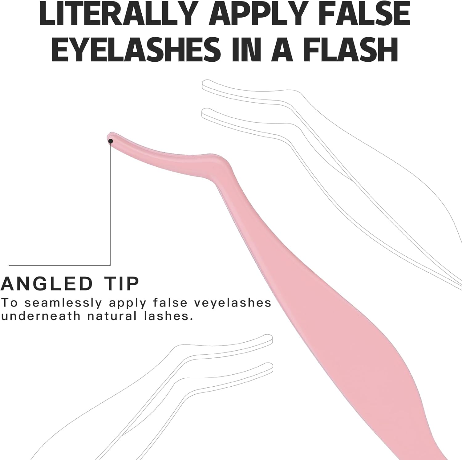 - Easy to Apply: Made of stainless steel material, Pretty memory eyelash applicator have excellent yet delicate grip, ensuring you to easily put your false eyelashes without damaging them. With 45ยฐangled ergonomic design, you are allowed to adjust and fix lashes easily and quickly. No more worrying about struggling with applying lashes