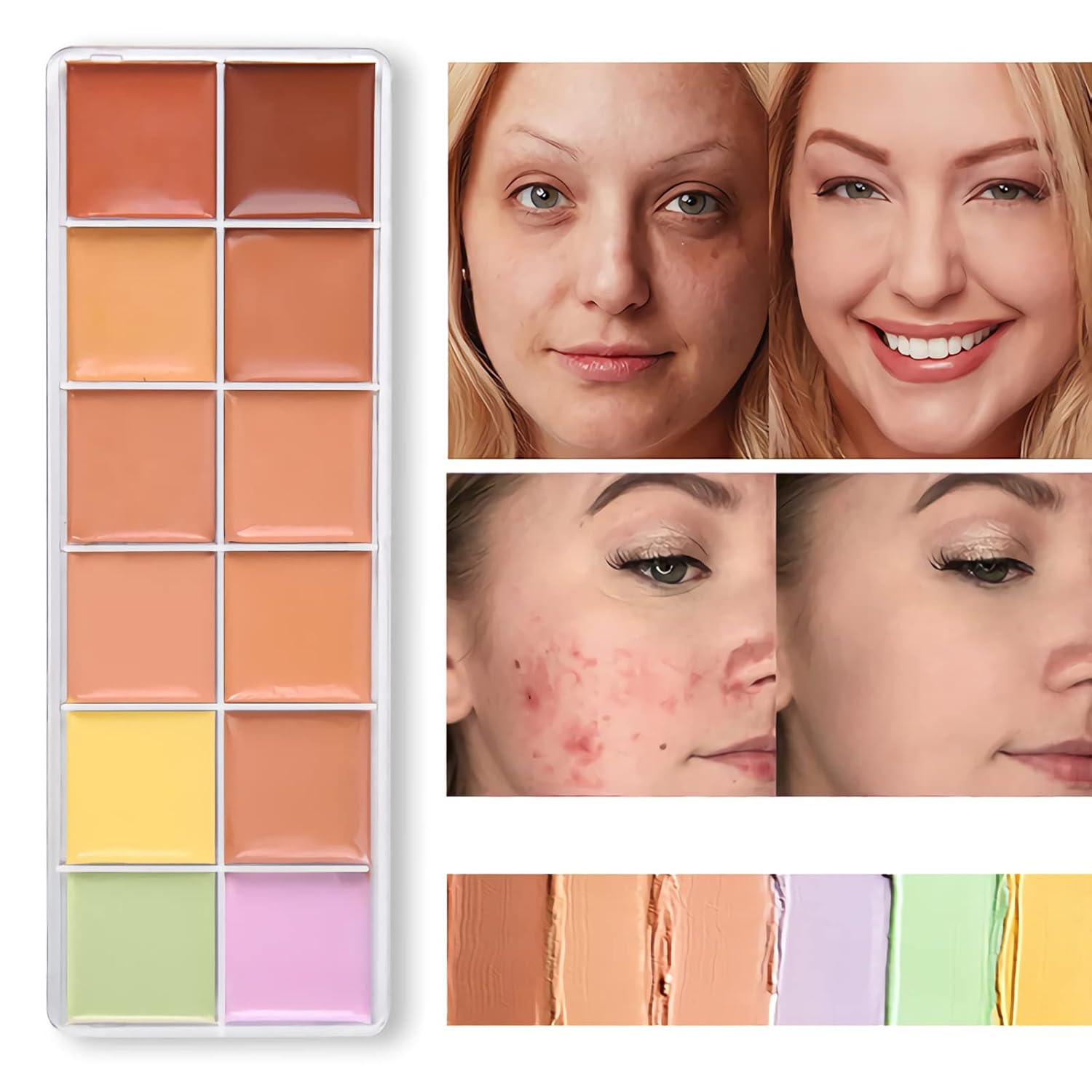 - 【Multi-purpose Concealer Palette】This concealer makeup can conceal your dark eye circles, pimple or scar. In addition to the 12 shades that we equipped, you can also adjust the color according to the actual color of acne marks and dark circles. you can also use it as contour palette, help you create 3D facial features.