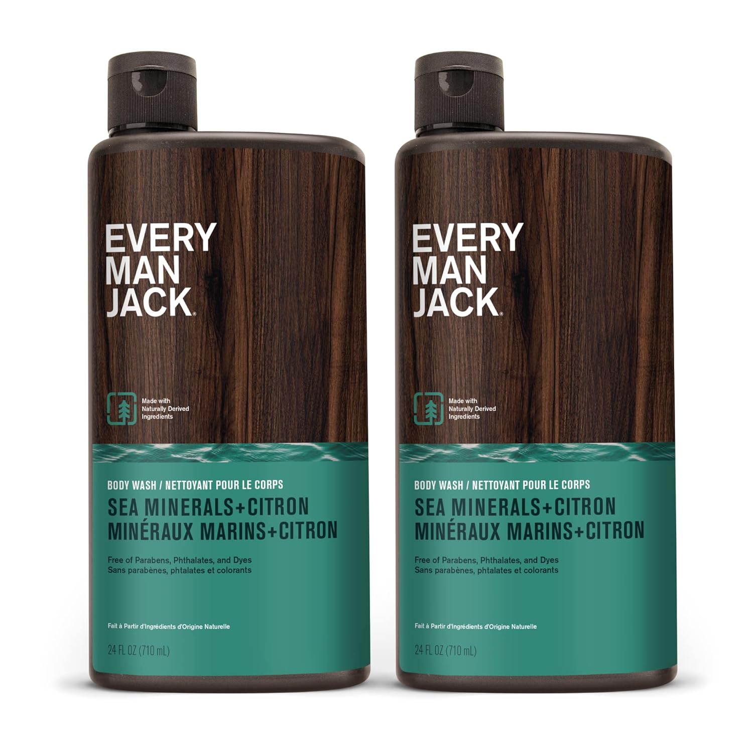 Every Man Jack Nourishing Sea Minerals + Citron Mens Body Wash for All Skin Types - Naturally Derived Ingredients - Cleanse and Hydrate Skin with Coconut and Glycerin - 24oz 2 Bottles