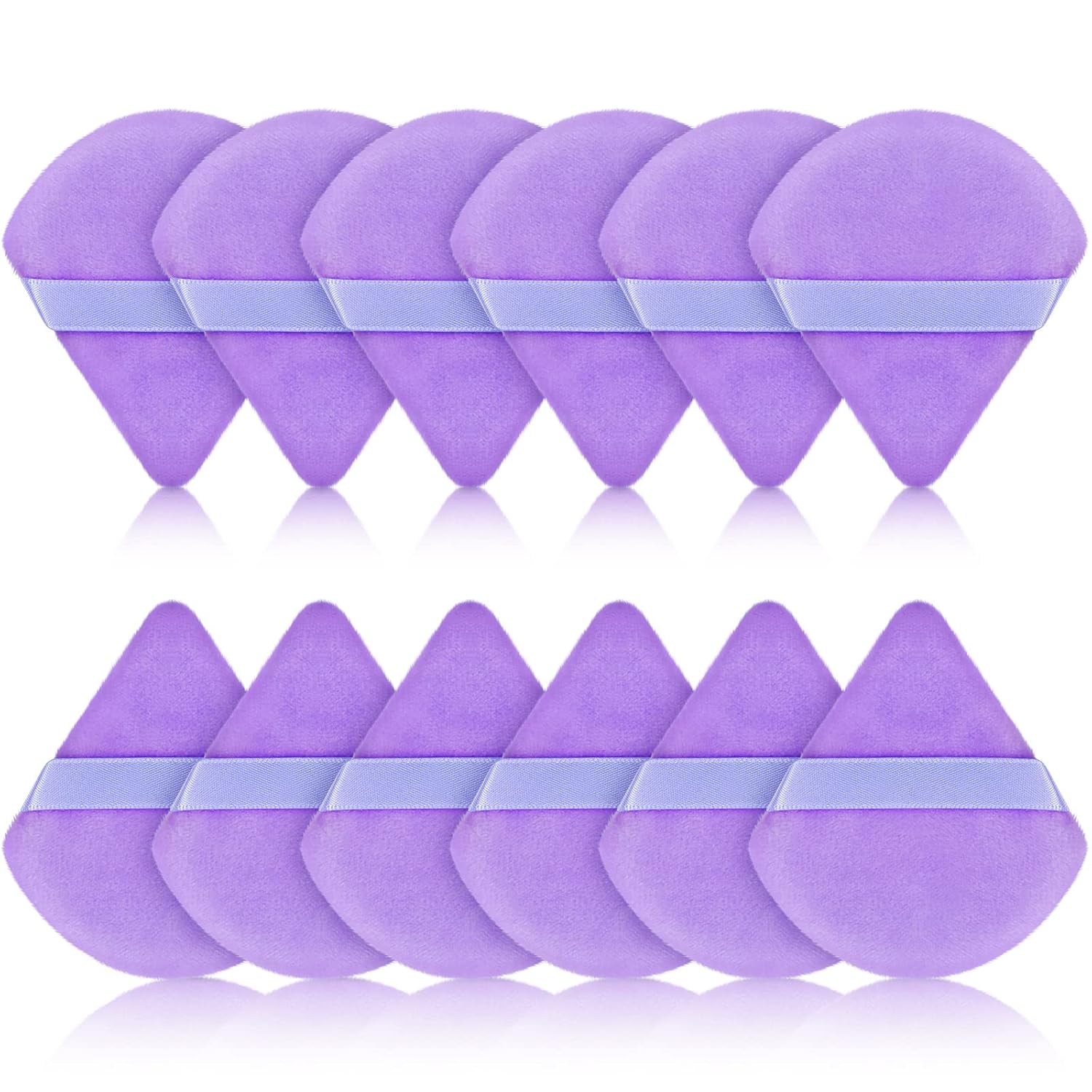 Maitys 12 Pieces Powder Puff Triangle Face Makeup Cosmetic for Loose Powder Soft Body Washable Reusable Foundation Sponge Mineral Wet Dry Makeup Tool for Women(Small,Purple)