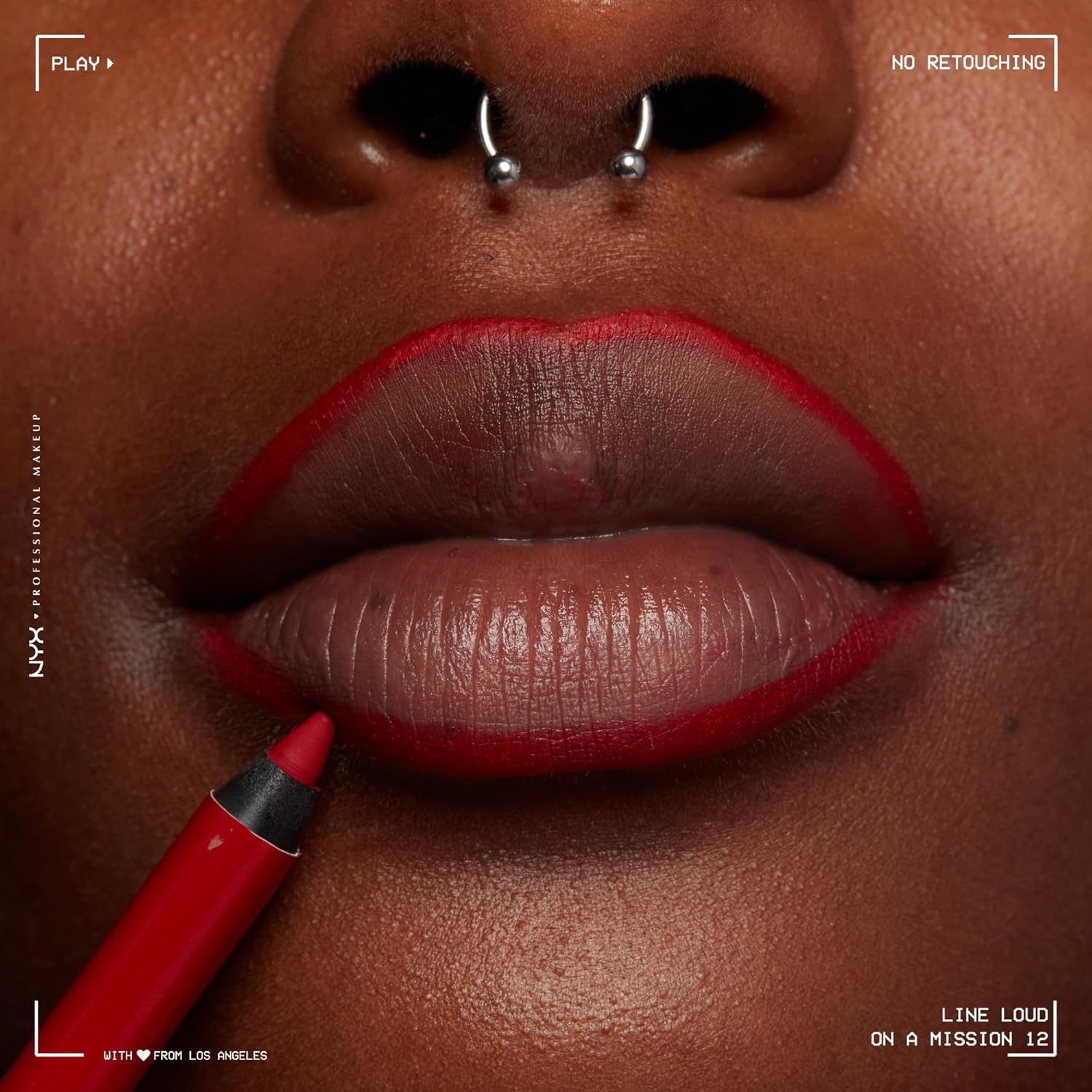 NYX PROFESSIONAL MAKEUP Line Loud Lip Liner, Longwear and Pigmented Lip Pencil with Jojoba Oil & Vitamin E - On A Mission (Blue Red)