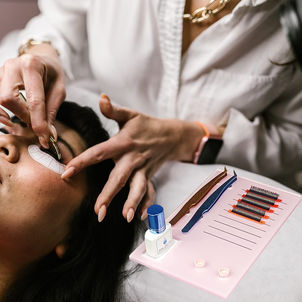 Grafting False Eyelash Acrylic Extension Pallet, Eyelash Extension Glue Tweezers Plate Pad Makeup Palette Individual Training Tools (Pink (7.87x5.12in))