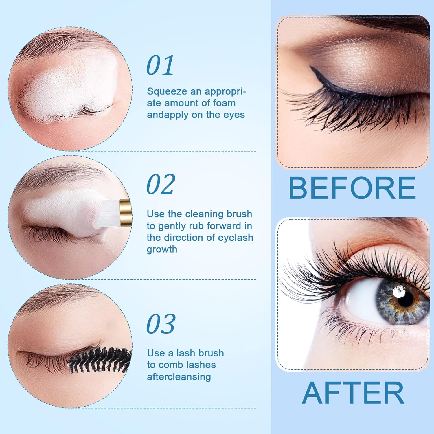 - ăPortable Eyelash Shampoo BottlesăThese about 60ml foam pump bottles are made of PET material, and the spring-loaded button ensures that there is enough liquid to spray into a foam. You can make your own lash cleanser as a gift to a new client's lash extension cleanser. It is also the perfect container for trips, excursions, trips.