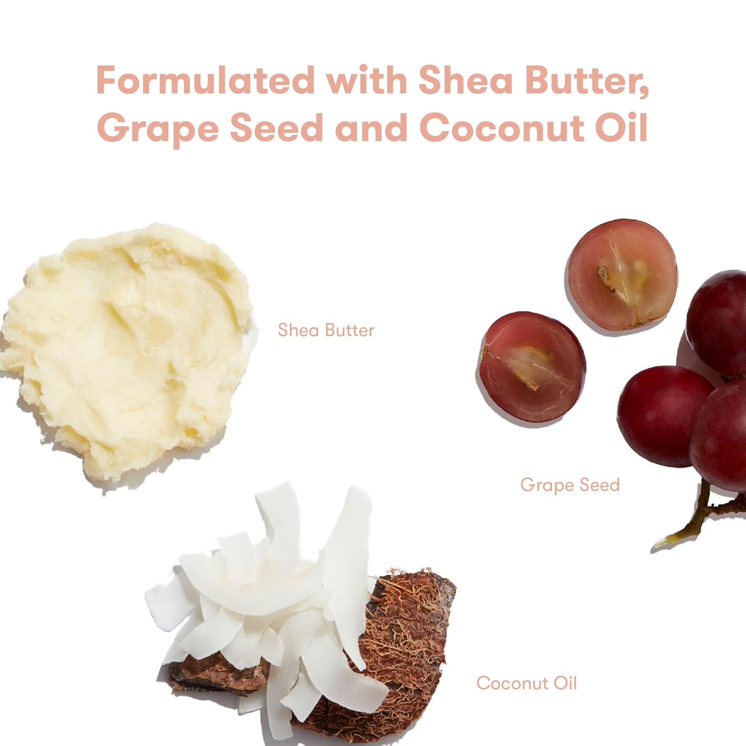 - COCOCNUT OIL, SHEA BUTTER + GRAPESEED: Gentle emollients that keep moisture on lock and strengthen the skinβs natural barrier