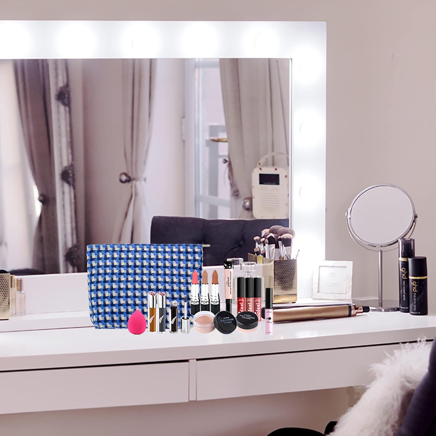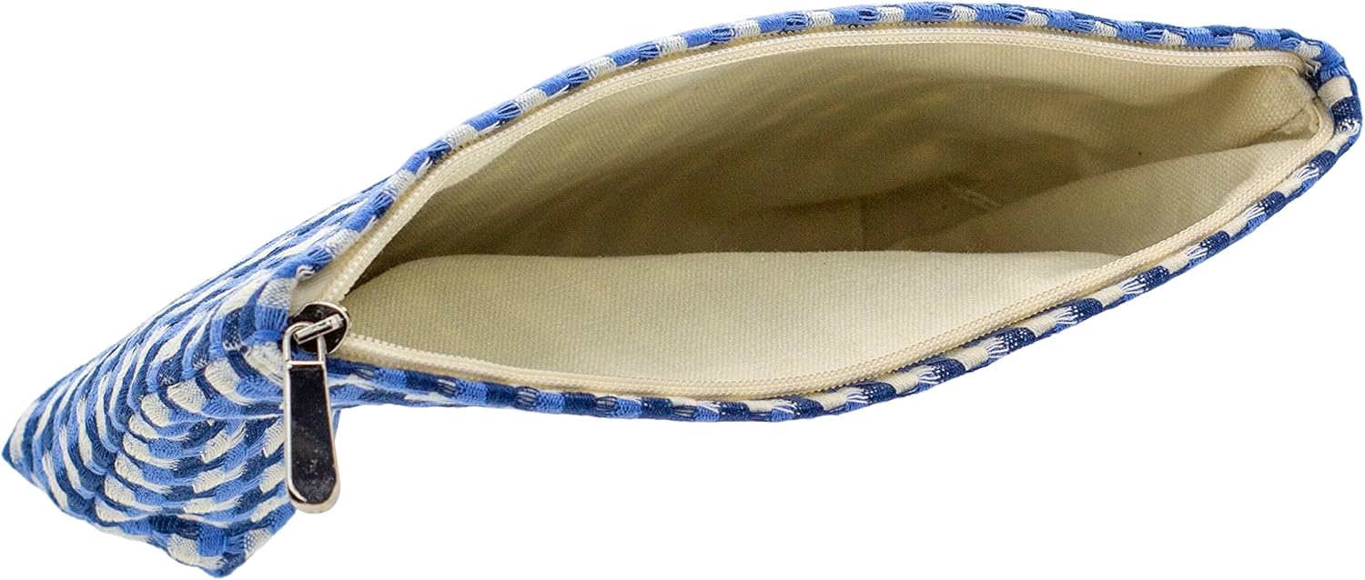 Makeup Bags for Purse Zipper Cosmetic Pouch Large Travel Canvas Make Up Organizer Tool Pouch for Women and Girls,Grid Blue