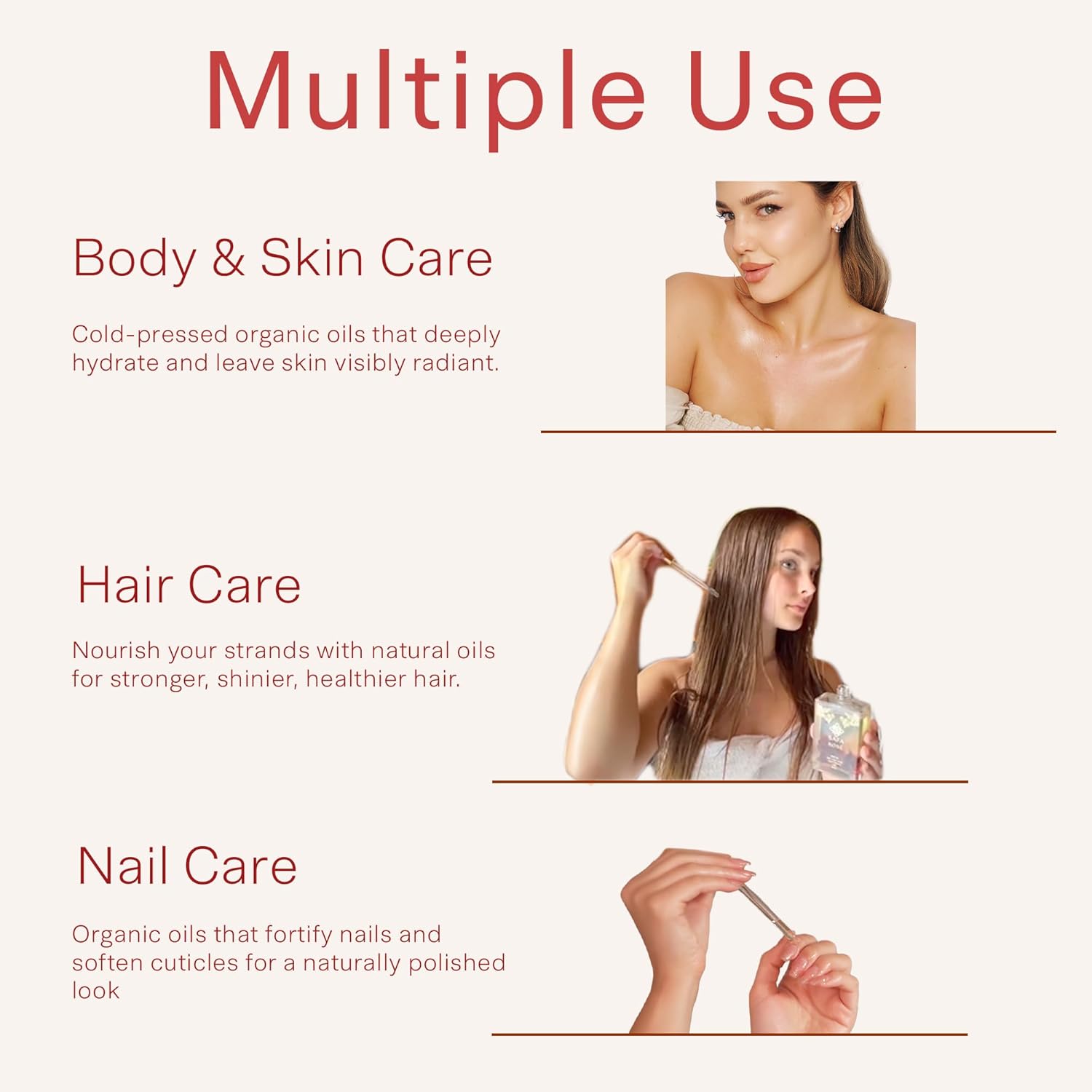 - HIGHEST STANDARD: Almond oil, rich in vitamins A,B,D, and E, penetrate deep within your skin's epidermis protecting and improving complexion and scalp health. Apricot oil is rich in omega 3,6, and 9 fatty acids that are essential to boost skin cell turnover maintaining fresh, dewy skin. Morrocan Argan oil is packed with squalane to transform, repair, and restore. All are Cold-pressed and Unrefined, ensuring benefits of each oil are maximized to be absorbed by the skin and hair
