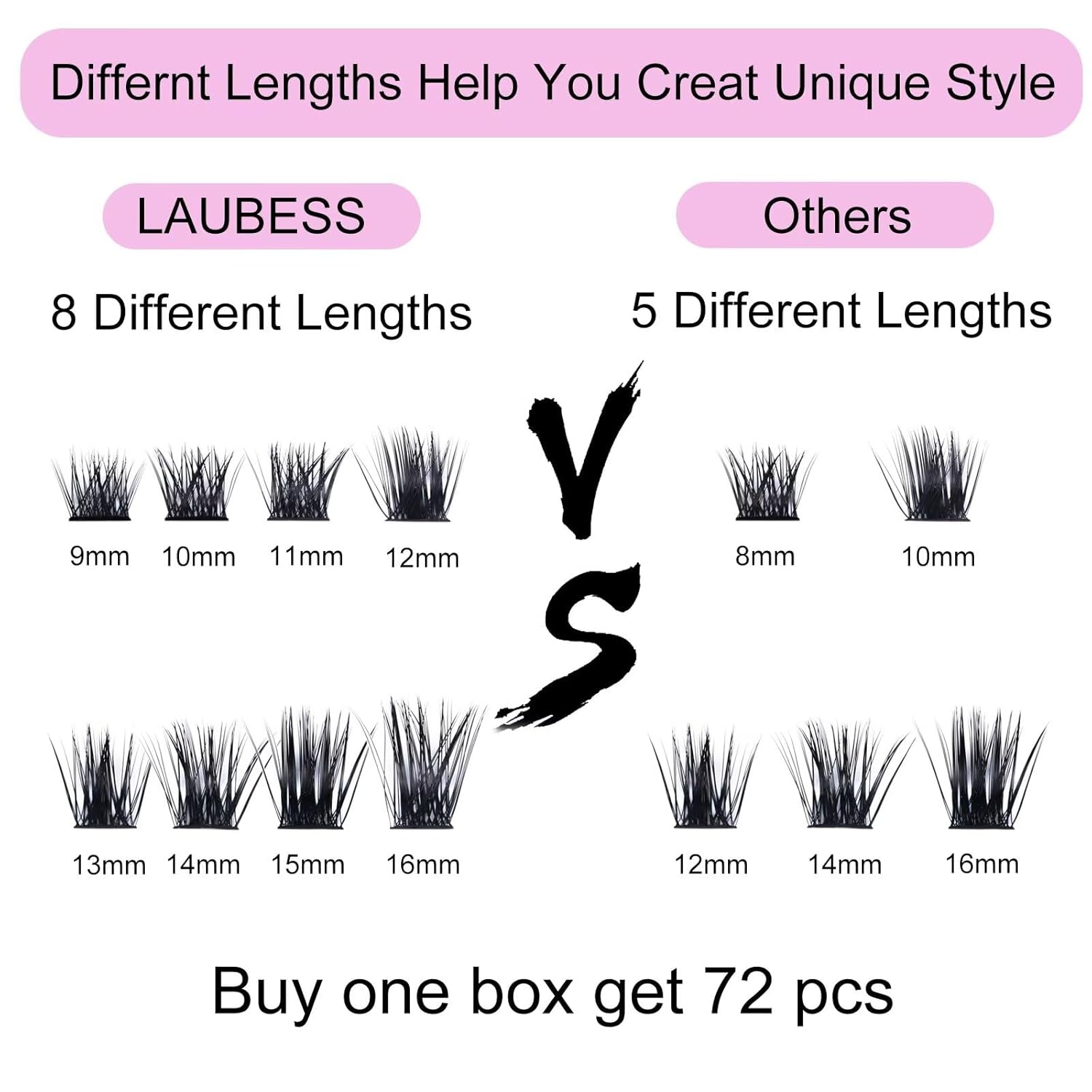 Cluster Lashes 72 Individual Lashes D Curl Lash Clusters Volume Eyelash Clusters DIY Lash Extension Kit Fluffy Cluster Eyelash Extensions (01-0.07D, 14mm)