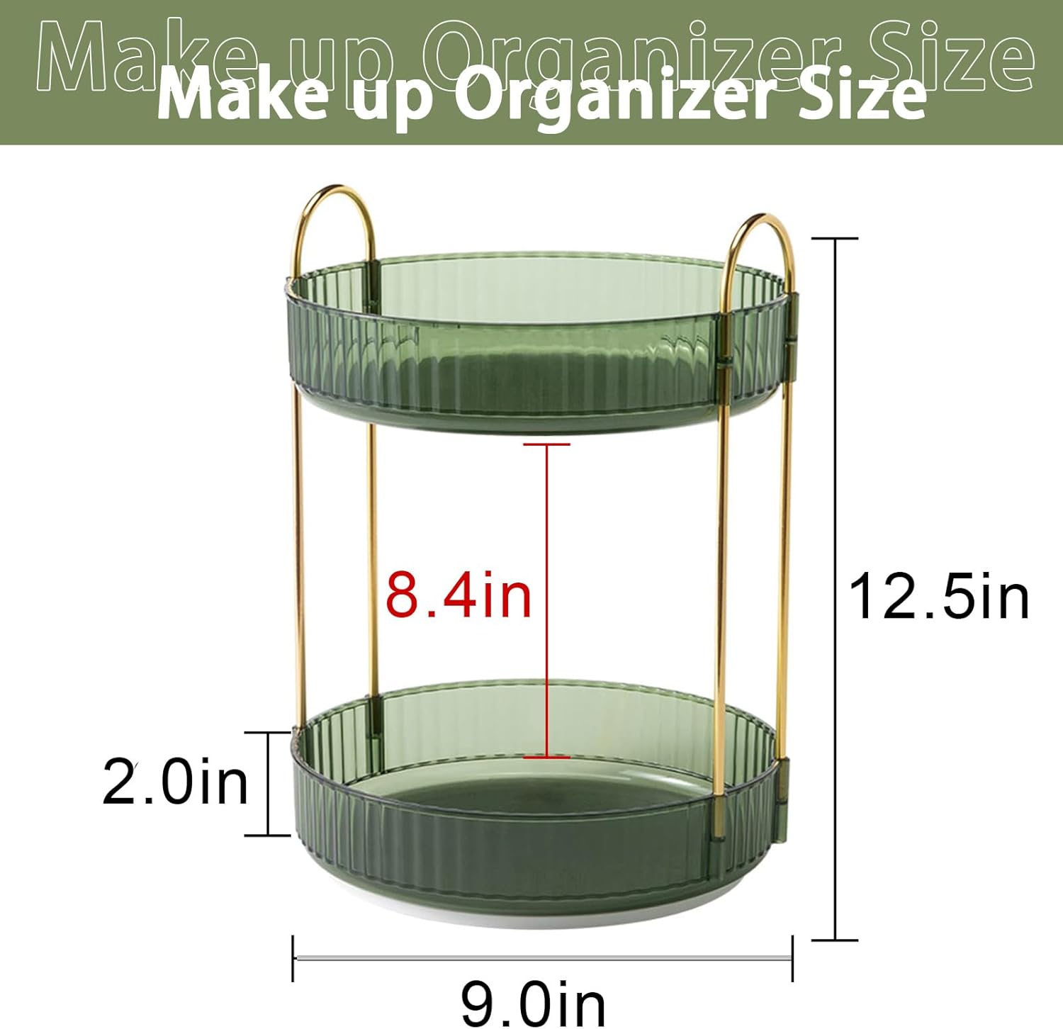 - Large Capacity: This organizer 2 tier measures 9''D x 9''W x 12.5''H, 3 tier measures 9''D x 9''W x 18.5''H (please measure your countertop space before purchasing). Great for organizing skincare, makeup, perfume or anything you like, save space and increase storage capacity