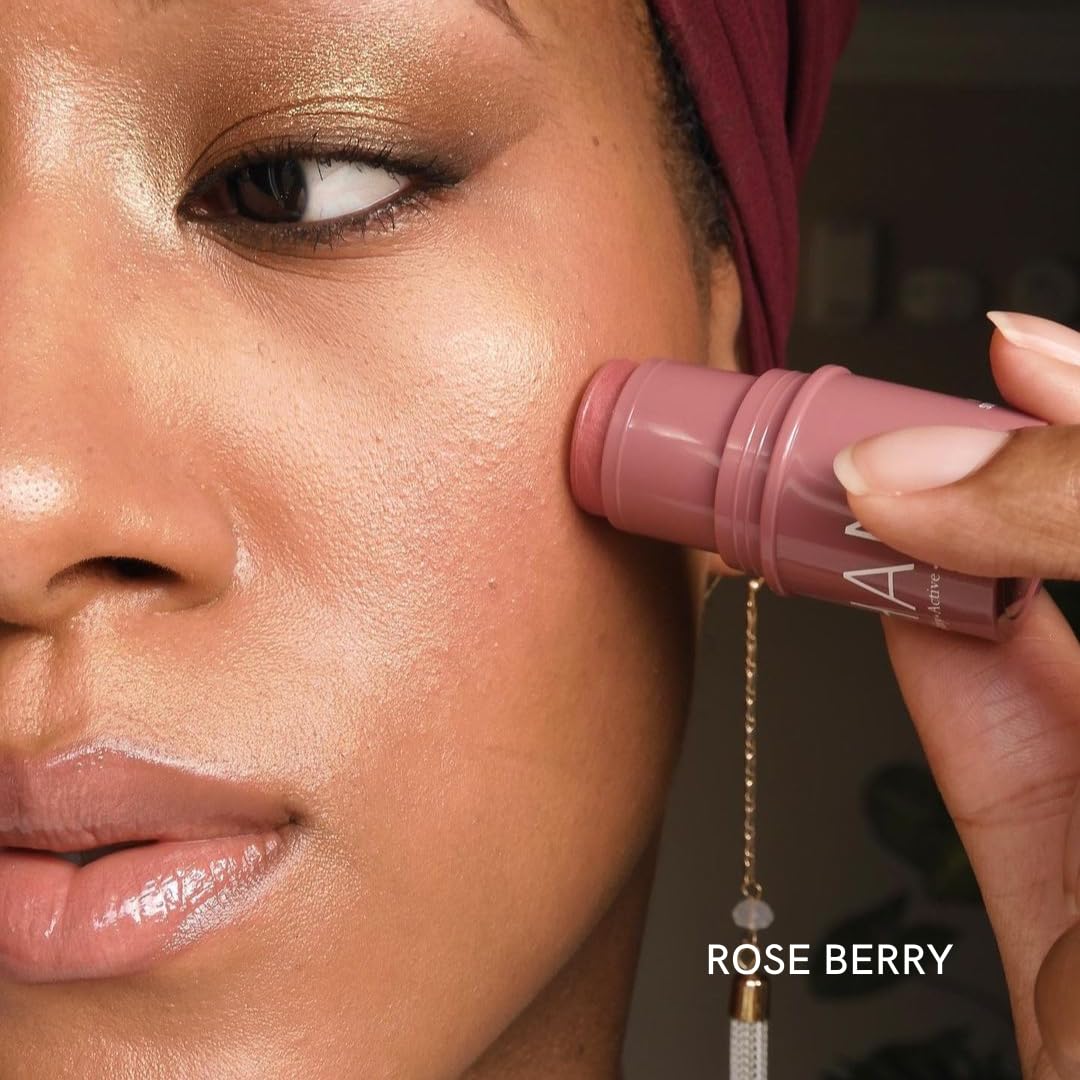 HAN Skincare Cosmetics Vegan, Cruelty-Free 3-in-1 Multistick for Cheeks, Lips, Eyes, Rose Berry | Large