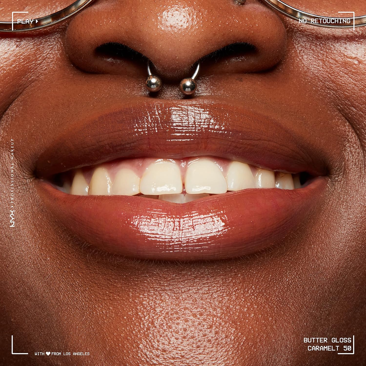 NYX PROFESSIONAL MAKEUP Butter Gloss Brown Sugar, Non-Sticky Lip Gloss - Caramelt (Medium Brown) (Pack of 2)