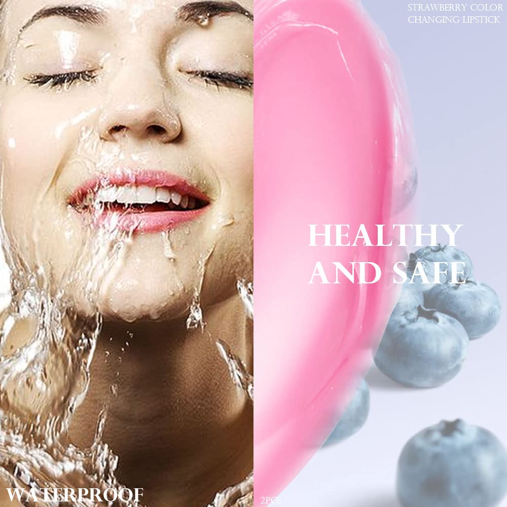 evpct 2Pcs Blueberry Tinted Lip Balms PH Lip Color Changing Lipstick Balm Stain Gift Set Queen for Women Girls Korean Mood Long Lasting Color Change Light Pink Lipstick Lip Tint Plumper Gloss