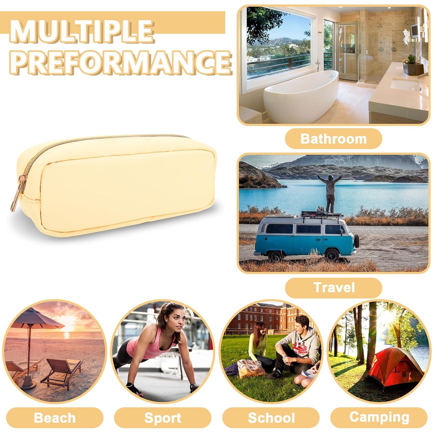 - 【Multi-purpose】The preppy makeup bag makes it easy to pack and carry cosmetics, jewelry, sanitary napkins, brushes, pencils, small electronic accessories, toiletries, medications, tools or other travel essentials. It's a great bag for school, travel, parties, camping, beach, gym, etc.