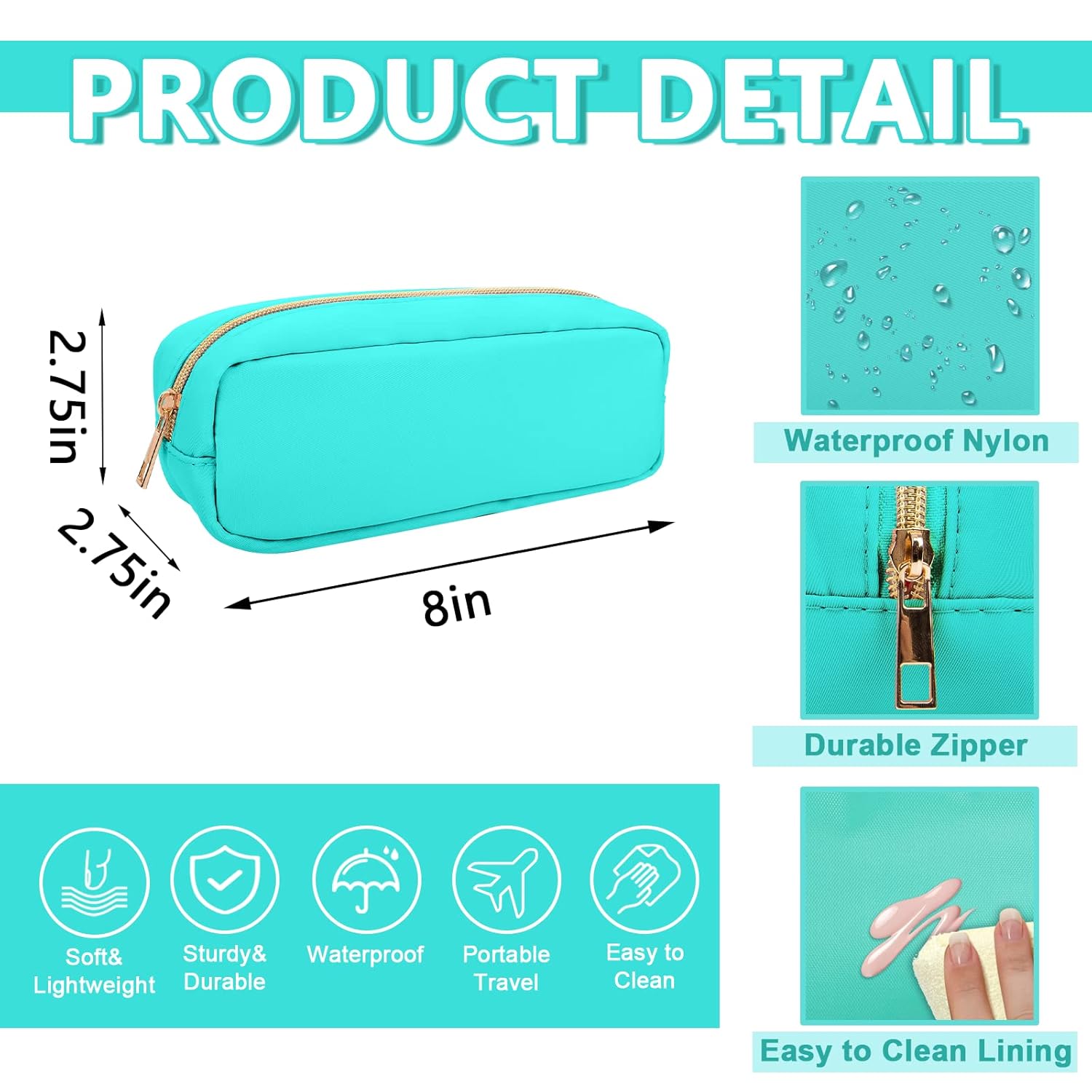 - 【Smooth&Sturdy Zipper】The nylon makeup bag has a metal zipper. The smooth and sturdy zipper is perfect for storing your daily essentials and preventing items from falling out of the bag.The smooth and sturdy zipper zipper allows you to have a good sense of use.
