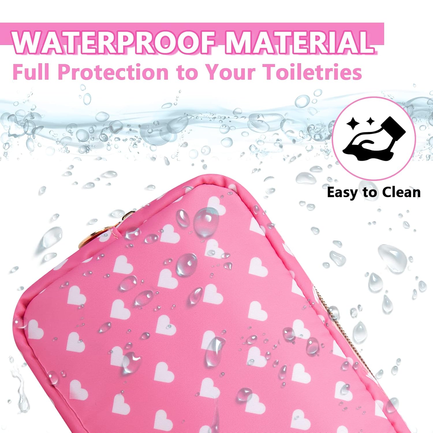 Small Makeup Pouch for Purse,Nylon Travel Toiletry Storage Cute Preppy Cosmetic Bag for Women Girls,Waterproof Makeup Organizer Pouch Skincare Purse with Zipper (Small-Pink Heart)