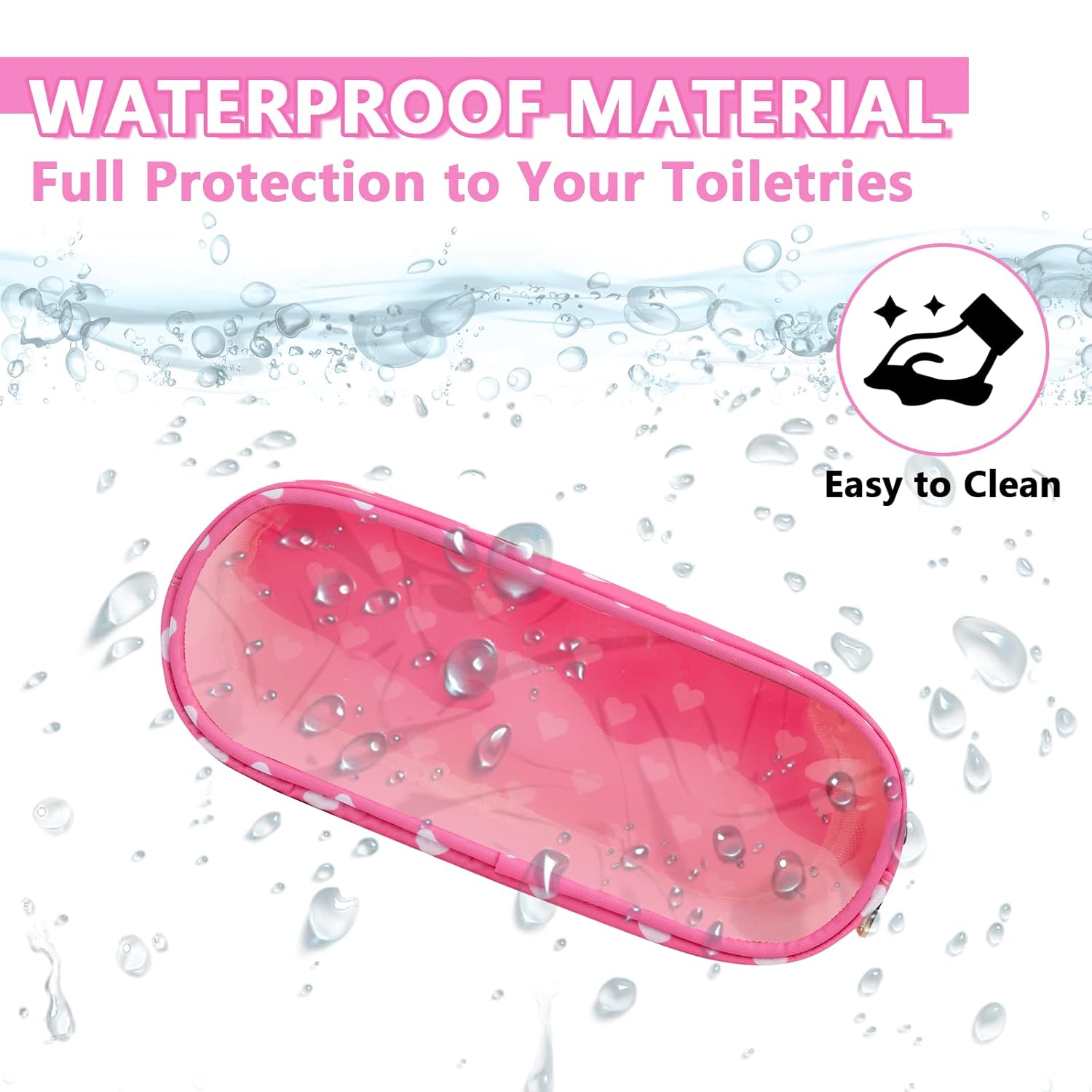 Clear Small Pencil Pouch Makeup Bag for Purse,Nylon&PVC Pencil Case Waterproof Makeup Brush Holder with Zipper,Preppy Transparent Pen Bag Travel Cosmetic Bag for Women Office(Slim-Pink Heart)