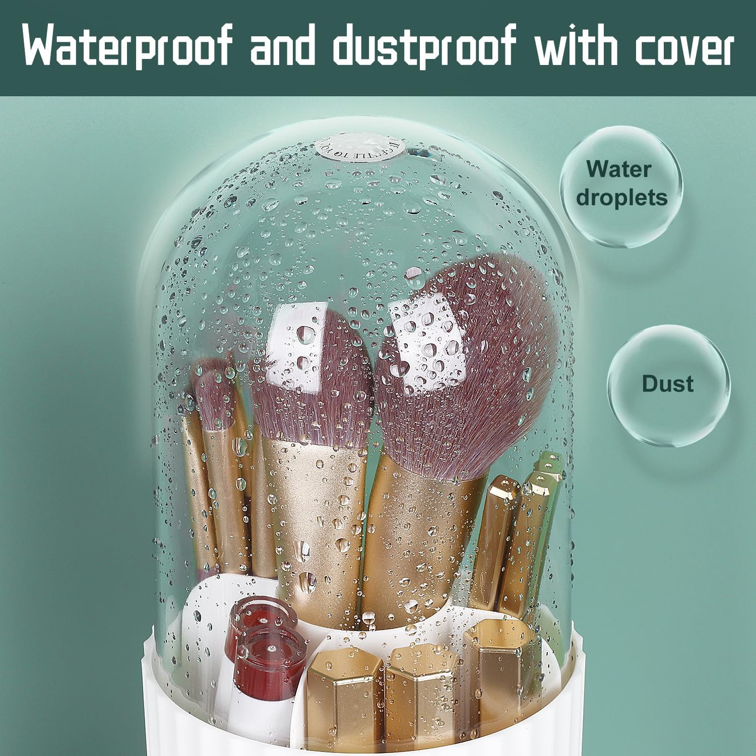 JessLab Makeup Brush Holder Organizer with Lid, 360 Degree Rotatable Makeup Brush Organizer Spinning Cosmetics Holders Brush Storage Box Display for Bathroom Vanity Countertop, White