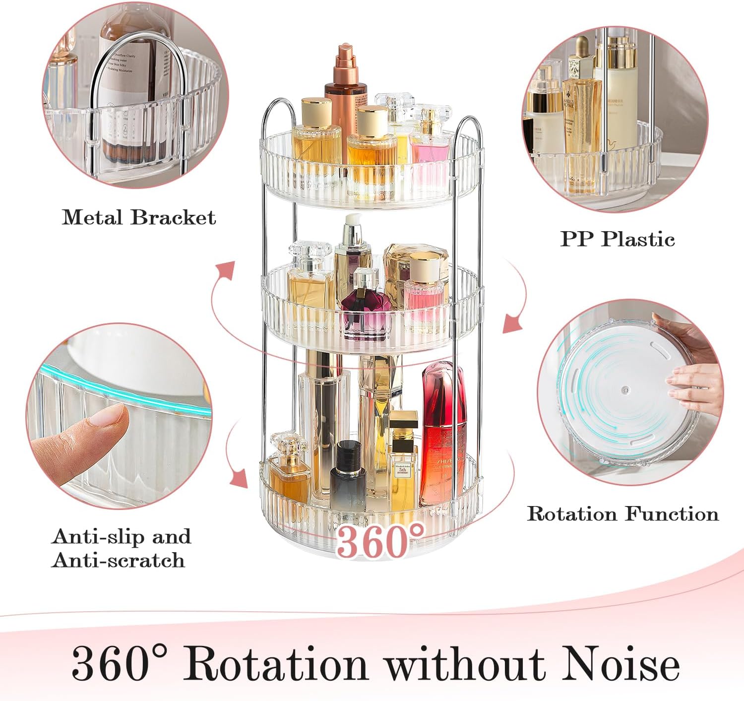 - ❤️ 【360° Rotation Makeup Organizer】ALUYUYO makeup organizer rotation without noisy, it has a stable base that rotates smoothly and makes it easy to access the cosmetics you need in seconds.