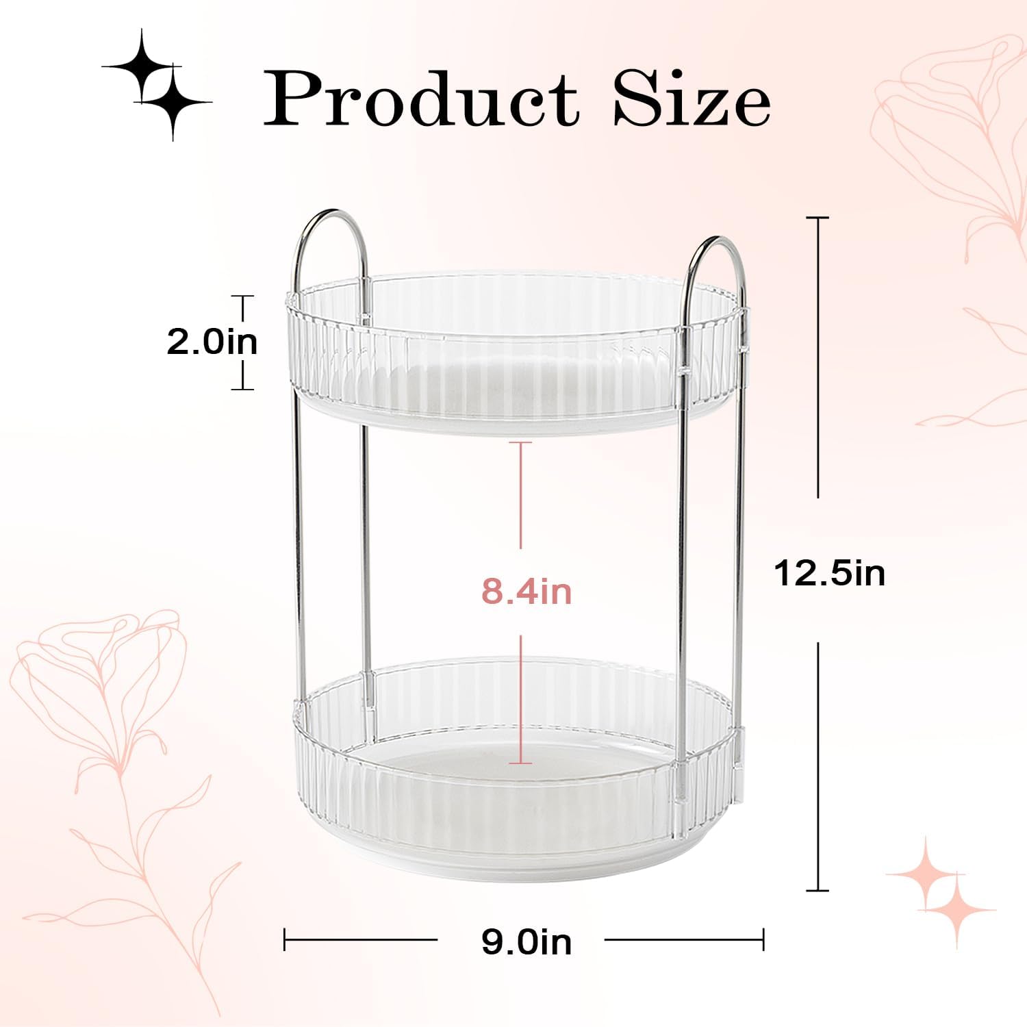 Rotating Makeup Organizer, 360° Spinning Makeup Storage Holder Rack, Dresser Bathroom Organizer Countertop, Large Capacity Perfume Skincare Lipstick Organizer for Vanity.(2 Tiers, Transparent)