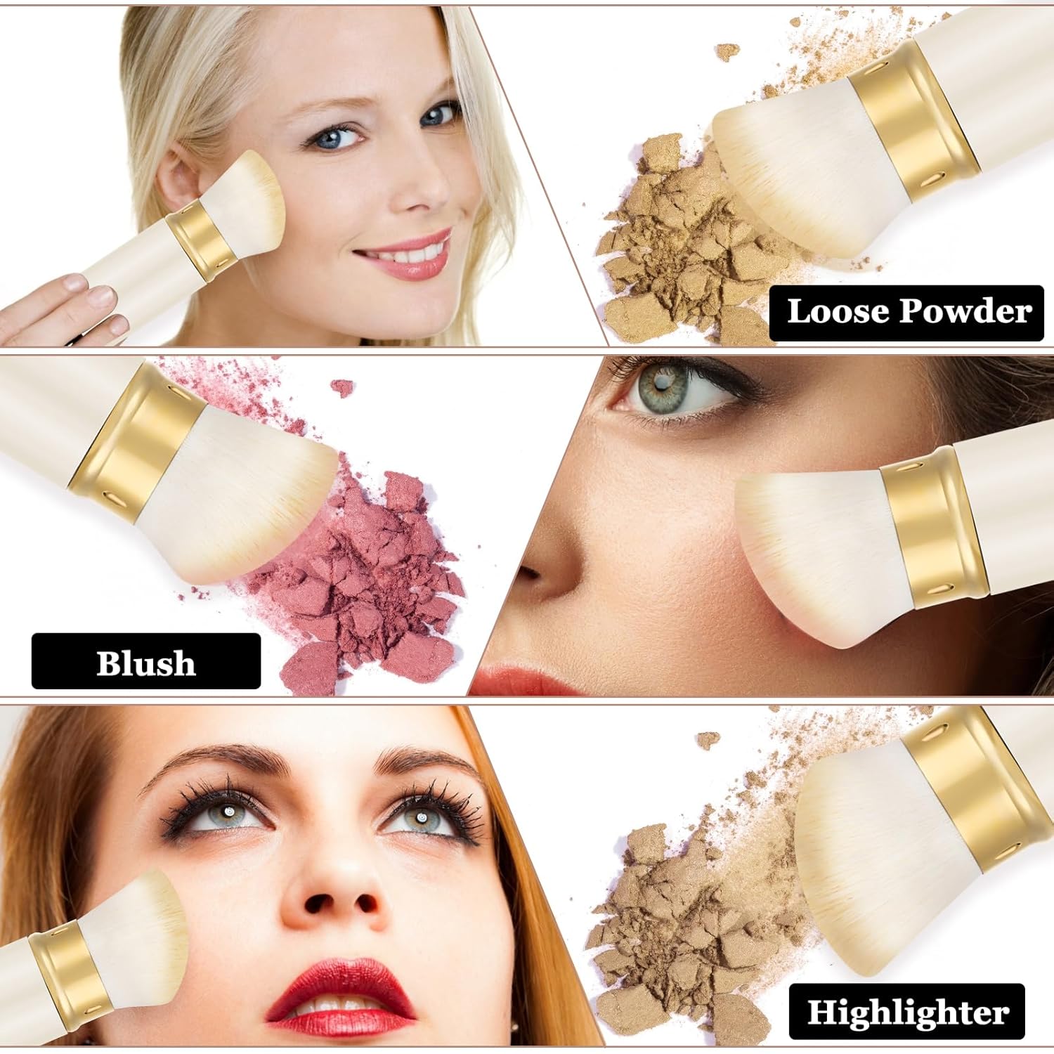 - ăSoft and Silky Brush Hairă The angled kabuki foundation brush made with high quality synthetic fibers, super soft, perfect for blending Liquid foundation , sunscreen, blush, cream, self tanner, buffing, stippling, concealer, bronzer, loose powder cosmetics or nail dust. allows you to tap on products for flawless, air-touched, full-coverage finish, don't absorb foundation into the brush itself.