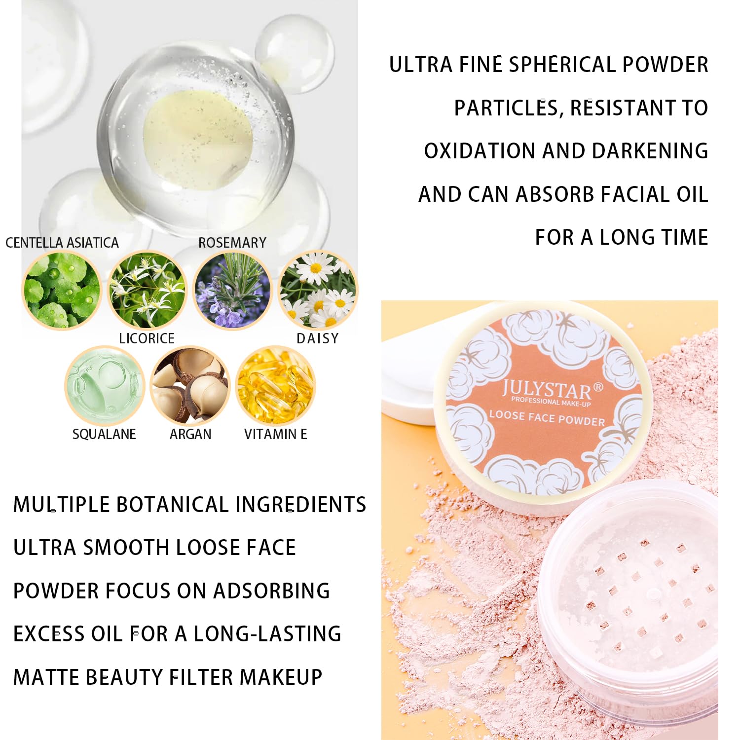 - 【Long Lasting Setting Makeup】Lightweight oil-free texture powder blends into skin easily to gives the effect of oil control, soft focus and long-lasting makeup setting enough to wear all day. Keeping your face look smooth and flawless.