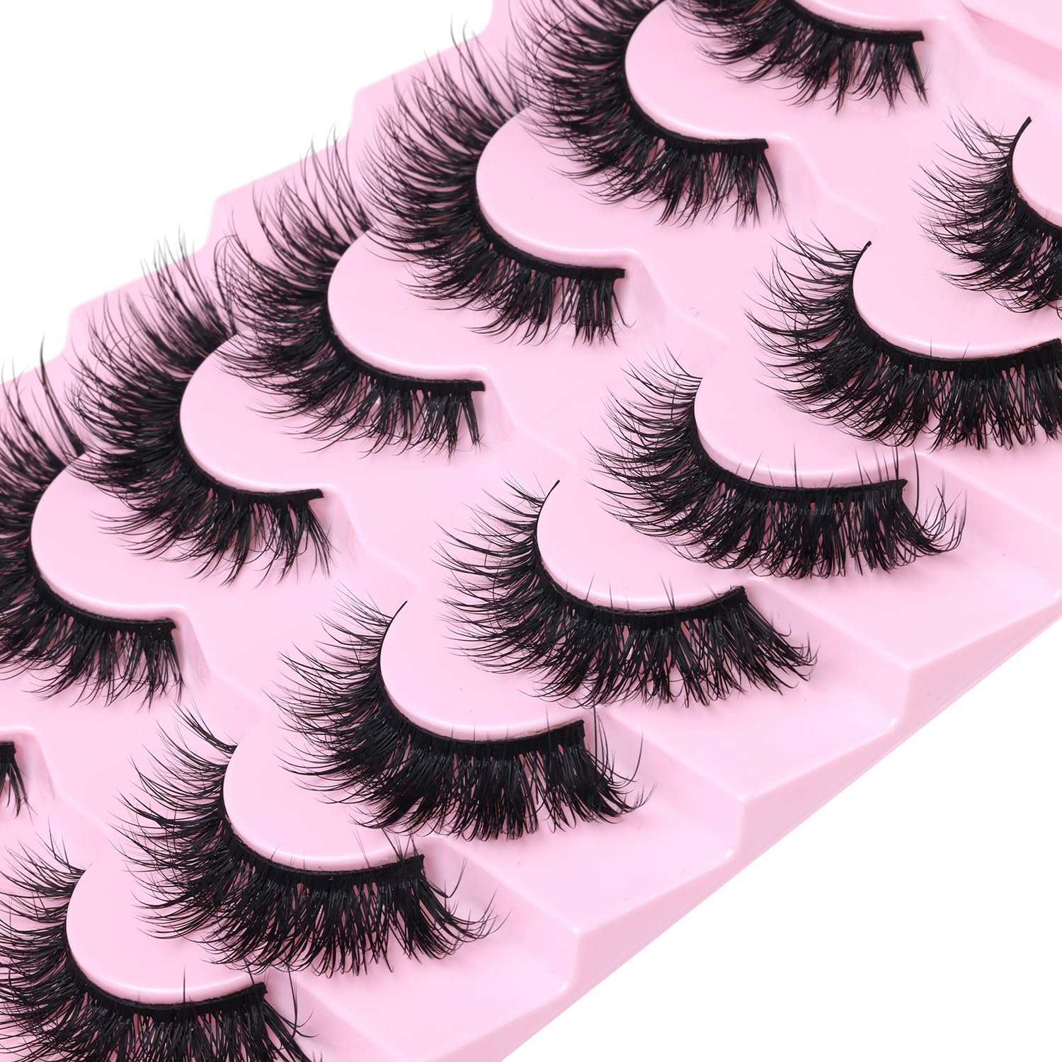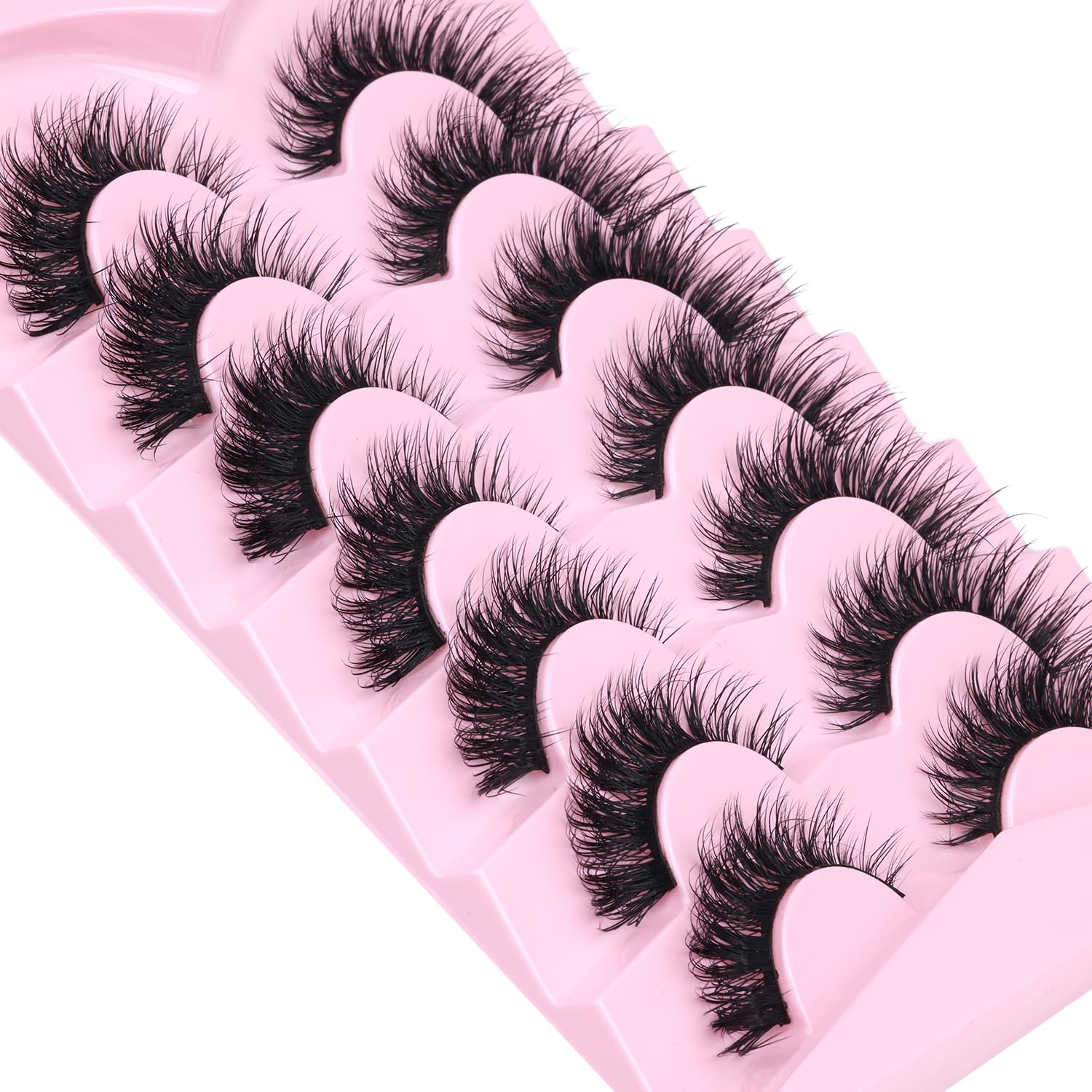 Mink Lashes Natural Look False Eyelashes Wispy Cat Eye Flat Lashes 3D Mink Lashes Natural Fake Lashes 15mm Strip Lashes Pack 7 Pairs by Kiromiro