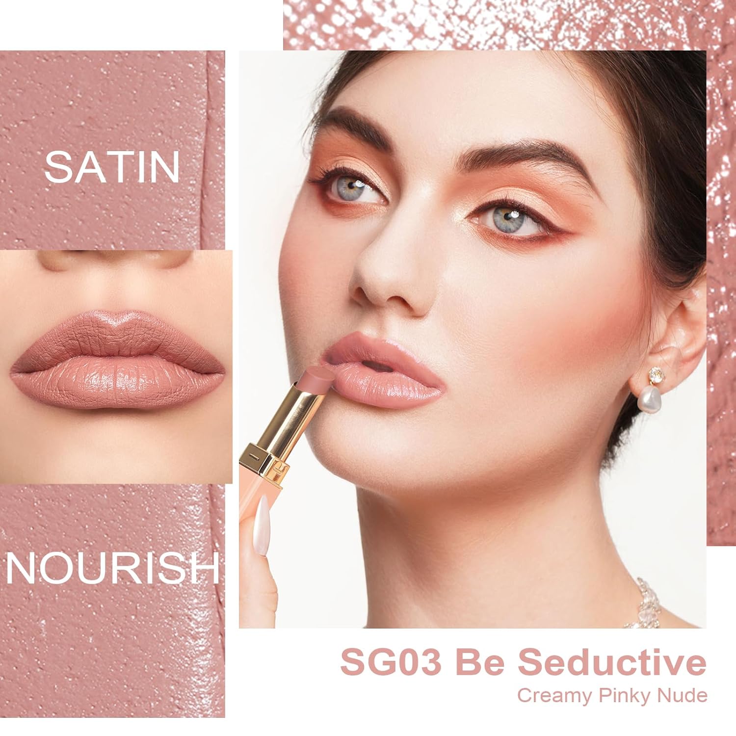 Oulac Nude Lipsticks for Women, Pink Matte Lip Stick, Full Coverage Lip Color, Satin Matte Finish, Cream Texture, Hydrating, Infused with Hyaluronic Acid, Vegan & Clean Beauty 4g SG03 Be Seductive