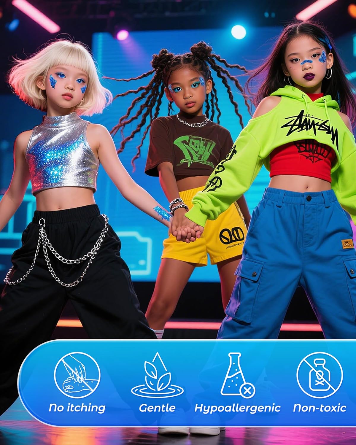 - Long-Lasting & Easy to Remove: Our body glitter stays put throughout the night and washes off easily with soap and water, leaving no stubborn residue