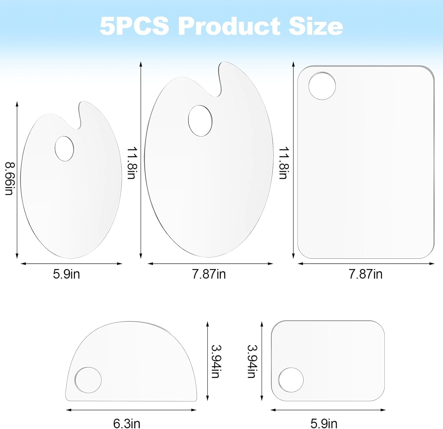 5PCS Acrylic Paint Palette Clear Paint Pallet,Transparent Non-Stick Oil Paint Palette with Protective Kraft for Craft DIY Art Painting Palette- Adults & Kids
