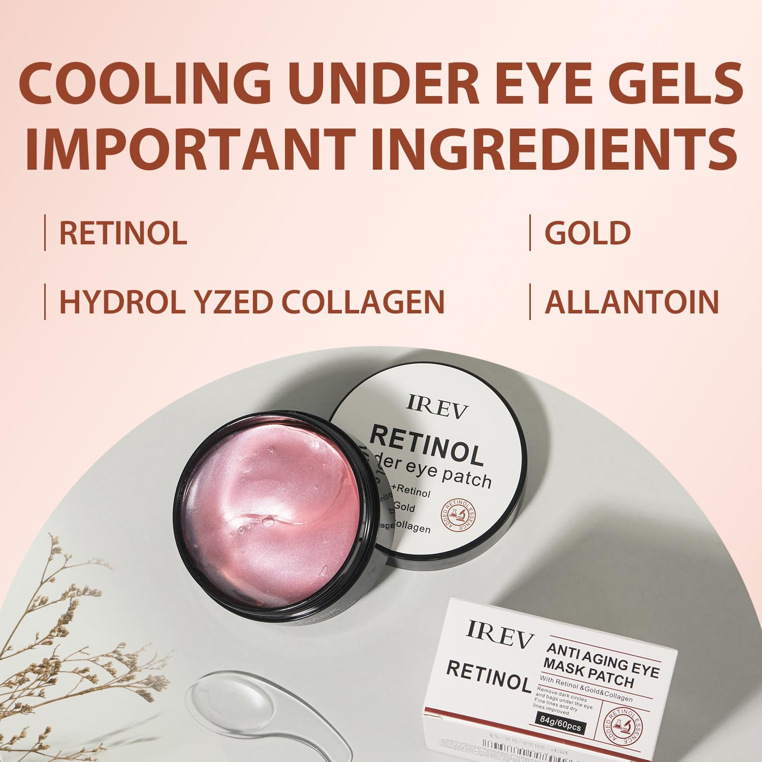 - ANTI-AGING: Anti-aging Retinol ingredient, which stimulates the production of collagen, helps to tighten the eye area, anti-wrinkle, fades fine lines, and increases the elasticity around eye skin.
