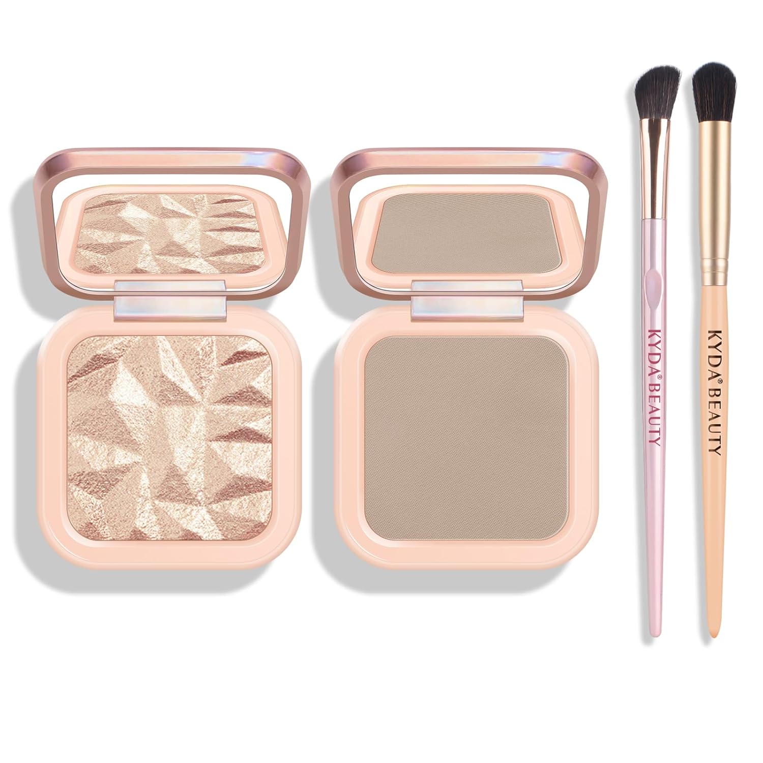 KYDA Highlighter Contour Palette Kit, Glossy Face Illuminator & Natural Matte Contour Bronzer, Lasting Glow Face Sculpting Contouring Makeup, Blendable Formula, Sun Glow & Taupe