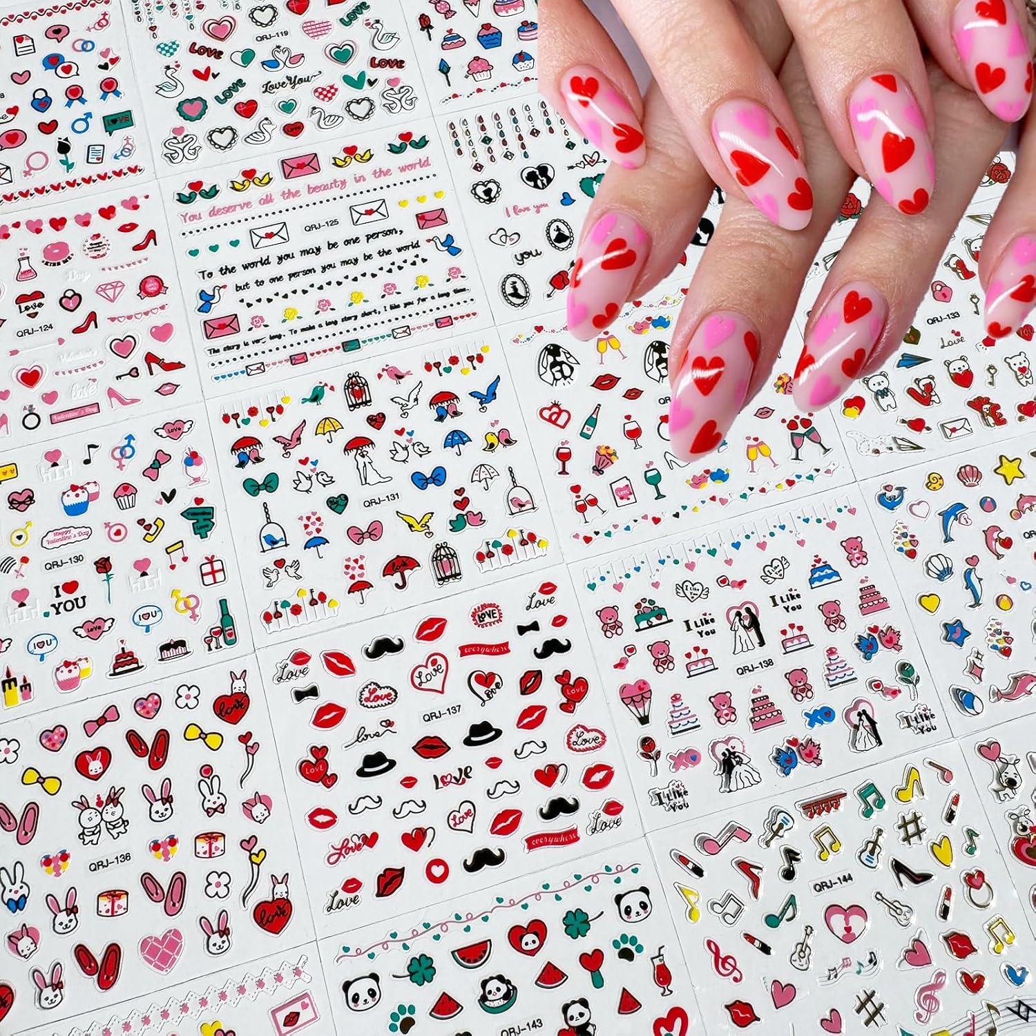 - Heart Nail Art Stickers: You will get 30 styles Valentine's Day nail decals,satisfy all your love for beautiful nails, a variety of elements for you to choose from to DIY your own nail art designs.