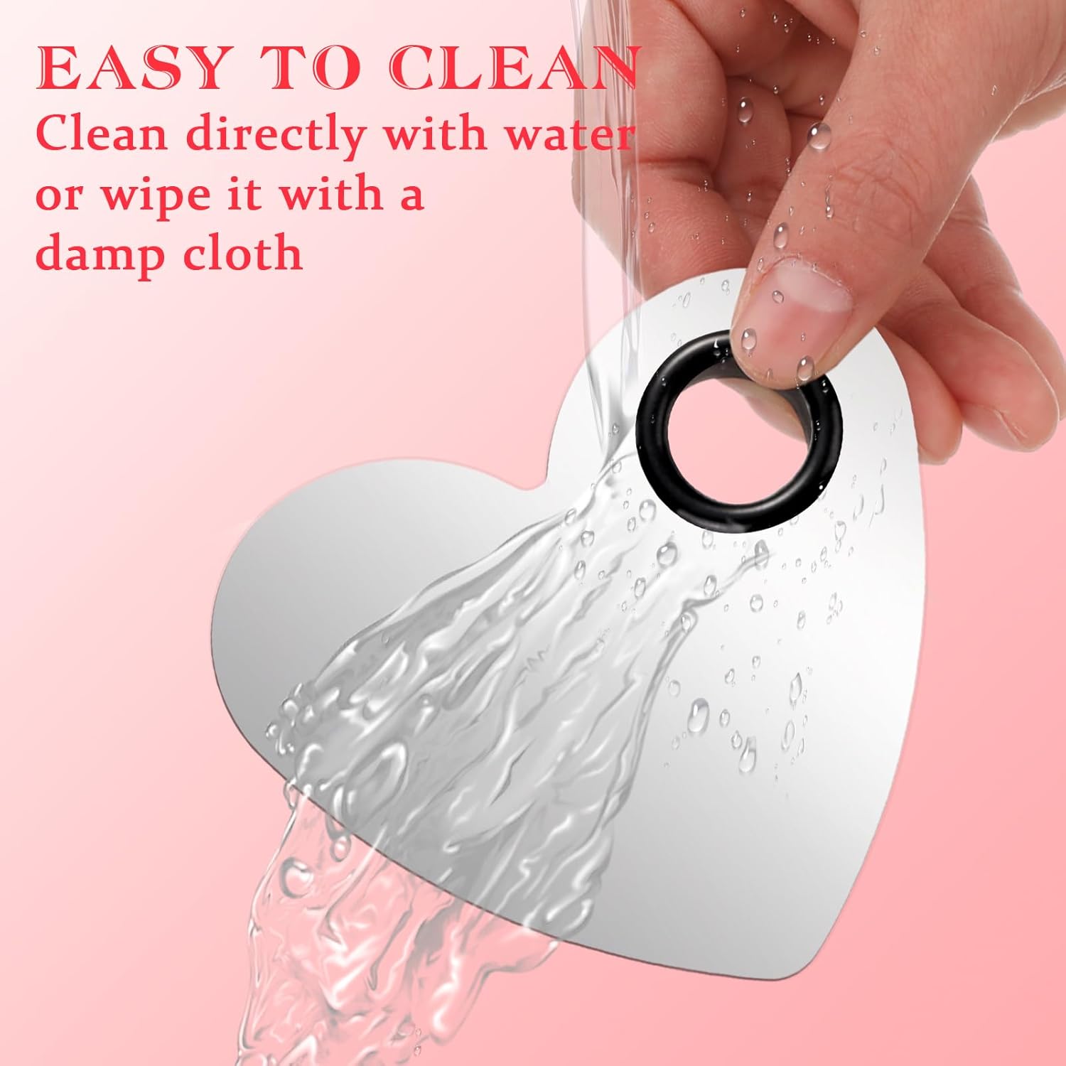 2 Pcs Stainless Makeup Mixing Palette,Tool for Mixing Foundation Nail-Art,Palette with A Stick,Storage Bag,Beauty Salon Color Cream Mixing Palette,Makeup Artist,Makeup Enthusiast (Heart Shaped)