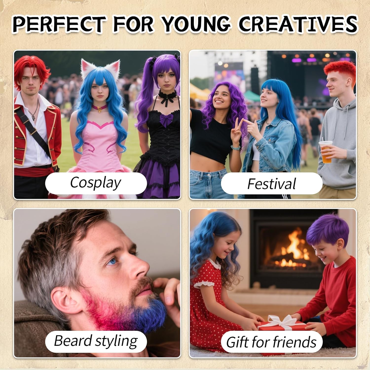 - 【Vibrant Colour】 We offer you 3 bright color options: red, purple, and blue. You can freely mix and match, or use a specific color alone to create a unique temporary hair color and showcase your unique charm.