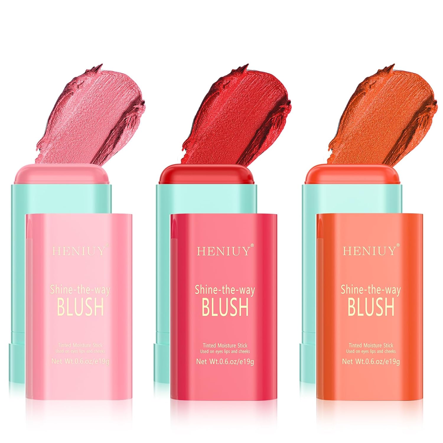 - [Natrual Rich Colors] This creamy blush rocks three shades: pink, red and orange. No matter if you're going for cute and sweet or bold and vibrant, this smooth blush stick has your perfect hue. The creamy blush can easily create a natural-looking and pretty complexion with just one swipe, making your makeup more natural and vibrant.