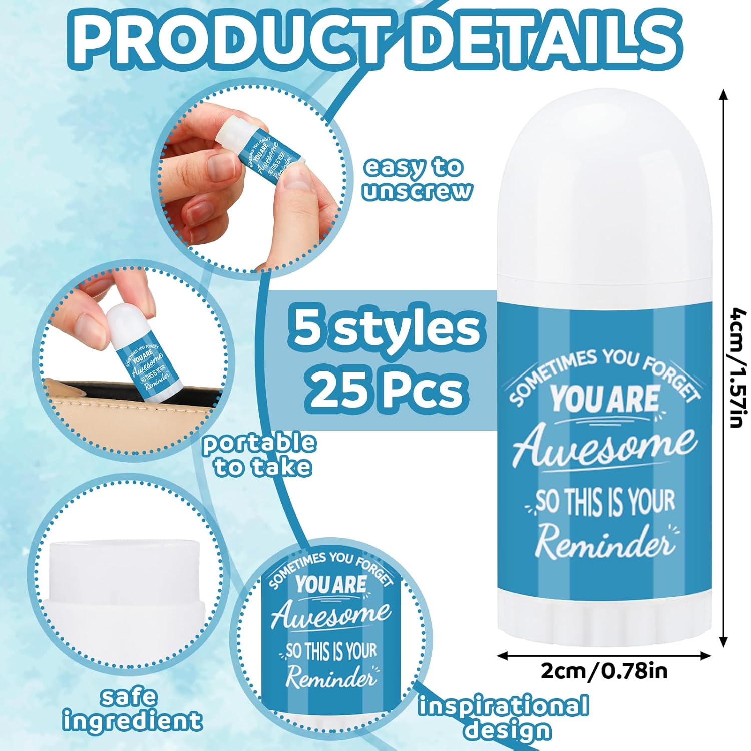25 Pcs Thank You Gifts Mini Lip Balm Bulk Gifts for Coworkers Inspirational Appreciation Gifts Natural Ingredients Dry Chapped Lip Care Products for Employee Women Teacher, Assorted Flavors