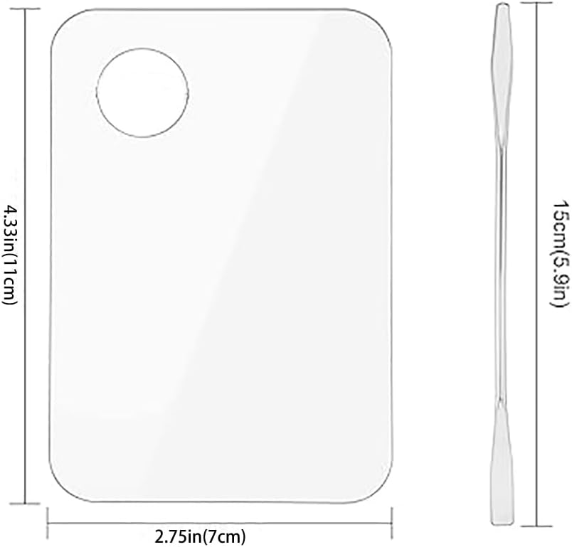 • Size: The Makeup Palette Tray is long enough to fit your hand, the size is 2.75 x 4.33inch / 7 x 11cm, Spatula length is 5.9inch / 15cm.